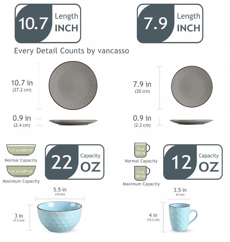 ✅ 12 кружек диаметром 9 см, высотой 10,2 см и емкостью 360 мл.