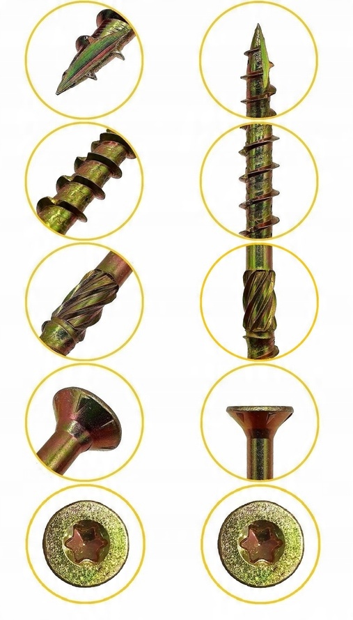 - Специальные черенки на резьбе пересекают волокна древесной конструкции во время привинчивания.
