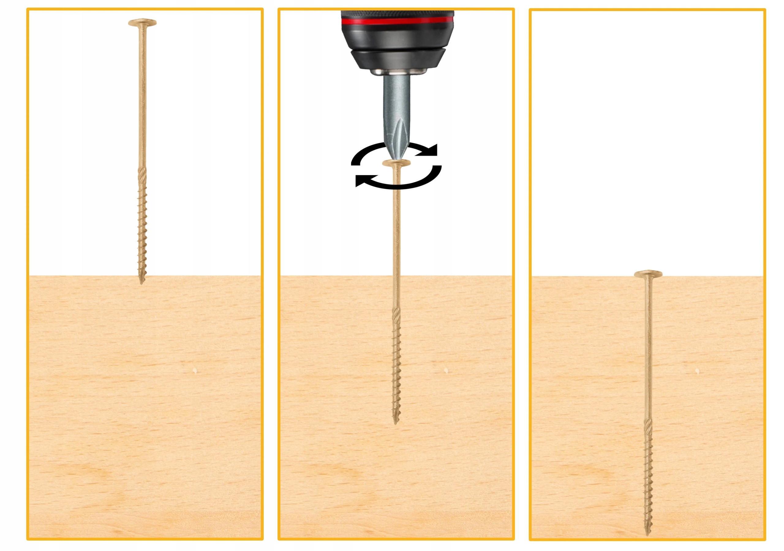 наконечник с резаком позволяет удобно закручивать без необходимости в предварительном бурении и позволяет минимизировать силу, необходимую для винта. разрезок В начале винт предотвращает растрескивание дерева и облегчает проникновение в