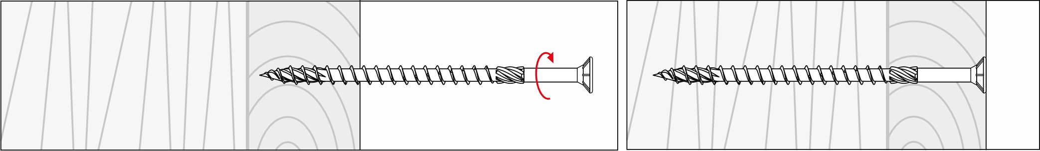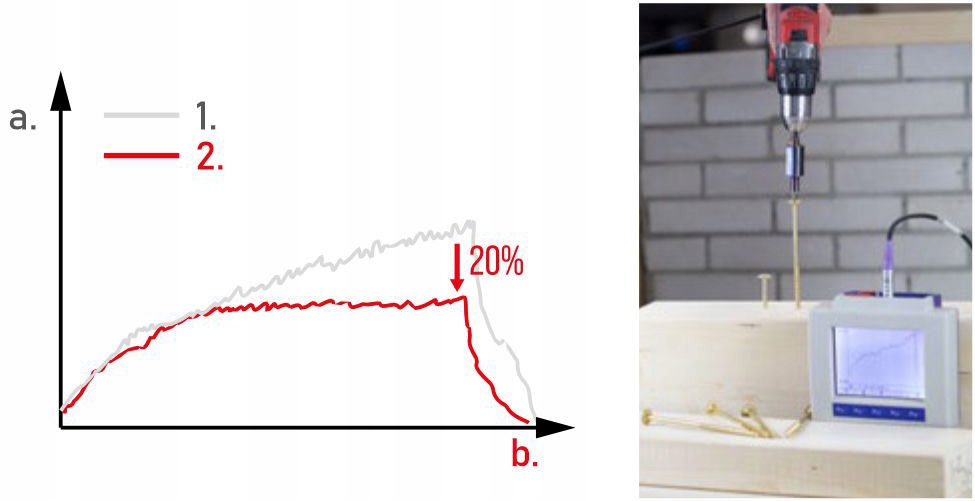 В исследовании, проведенном до реализации продукта, мы подтвердили, что новая форма наконечника винта уменьшает время прикручивания до 40% с той же нагрузкой. Сохранение зависит от типа используемого соединения и древесины.