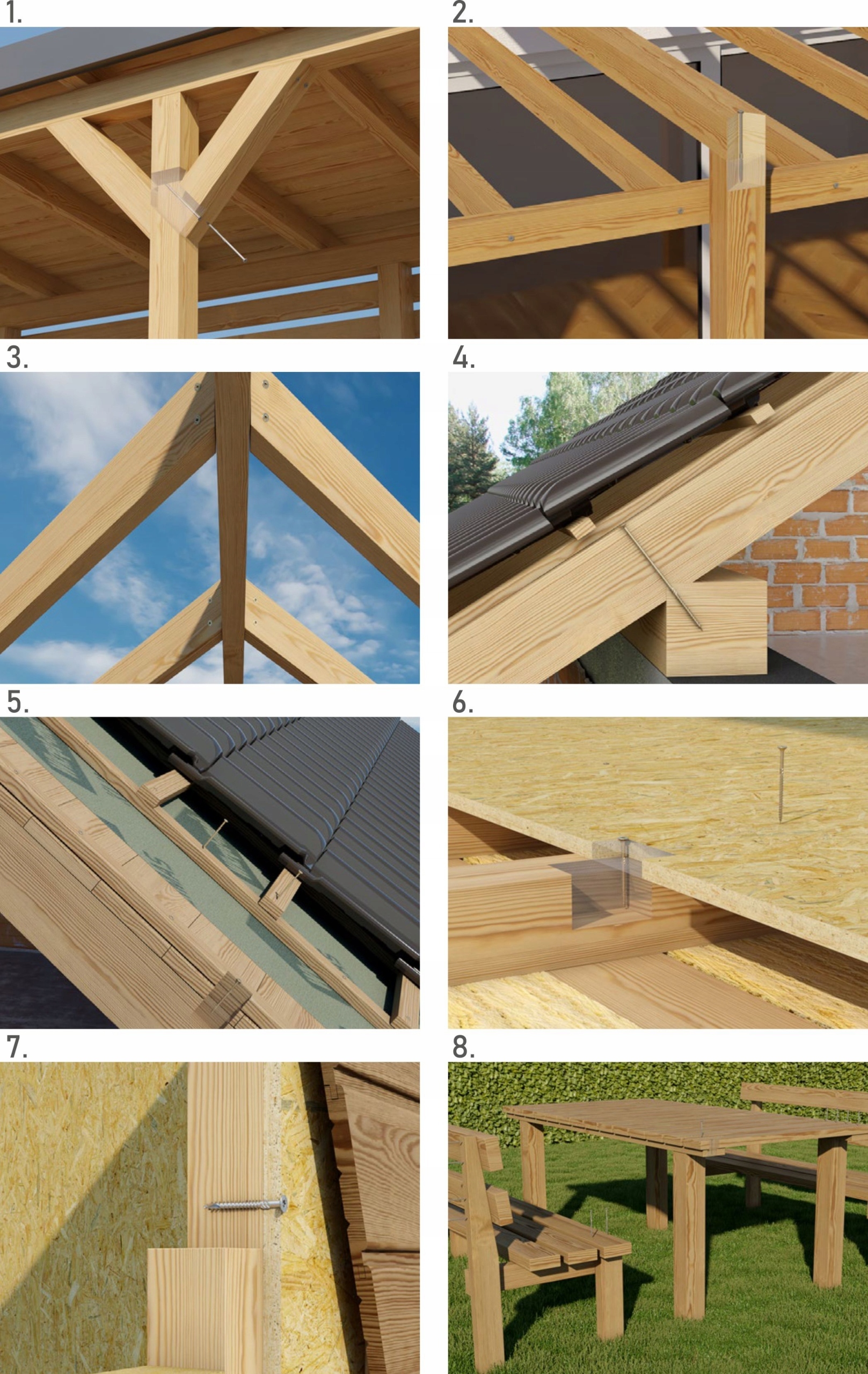 Винты цизиэле посвящены деревянным соединениям и деревянным материалам. В настоящее время все больше и больше новых инвестиций создаются с использованием CLT, LVL, KVH и BSH Wood. Использование винтов плотницких винтов в них увеличит экономику и эргономику работы.