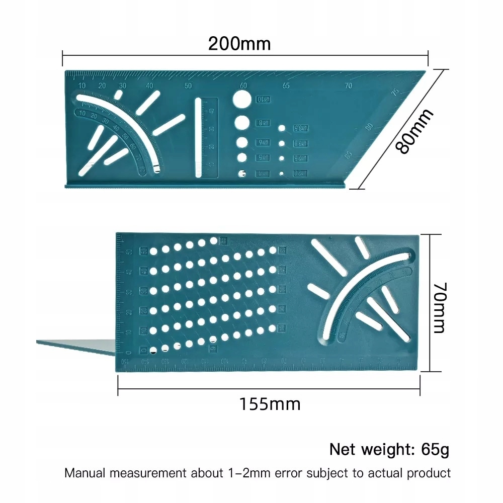 Многофункциональный угольник идеально подходит для трехмерной маркировки, измерения и передачи углов, ограничитель 45° и 90°.
