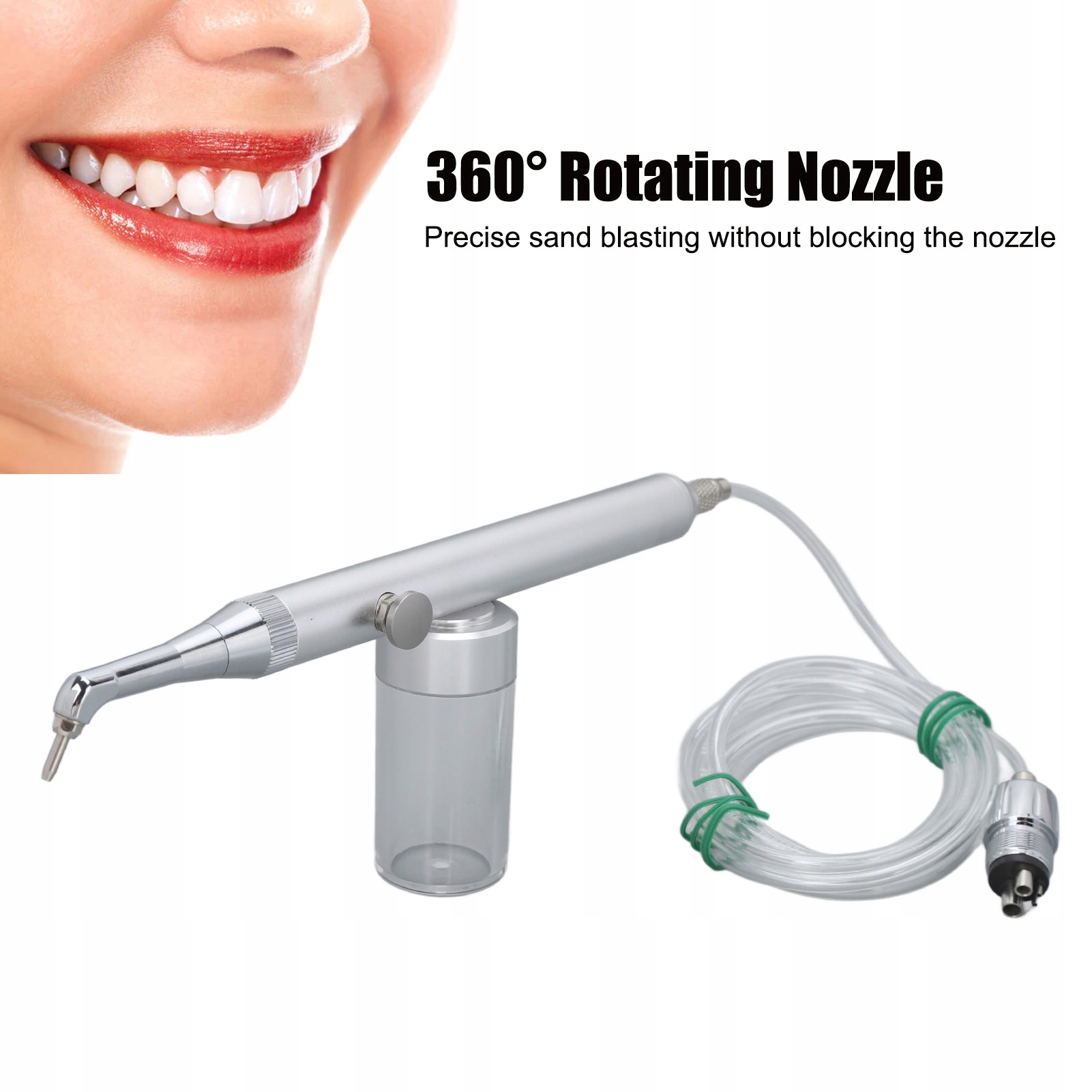 2. 360 ° Ротационная форсунка: зубной песчаной блюд принимает вращающийся сопло 360 ° для точной песочной обработки, не блокирует сопло. Точная сборка, важный инструмент для стоматолога.