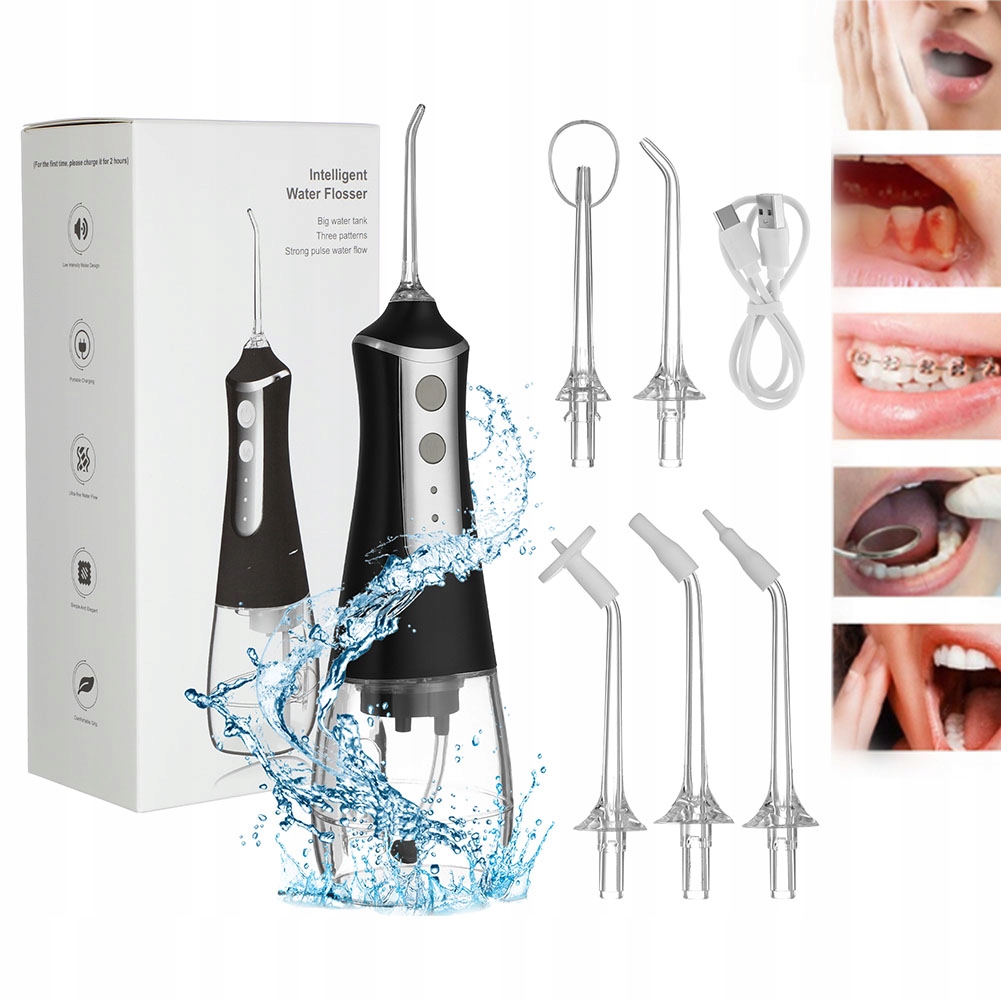 зубной ирригатор для зубной беспроводной формы 5 сопла 3 черные скорости