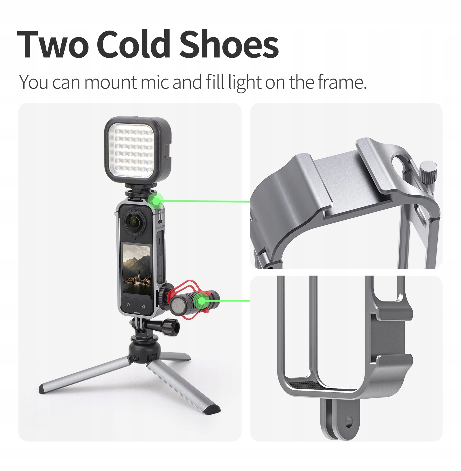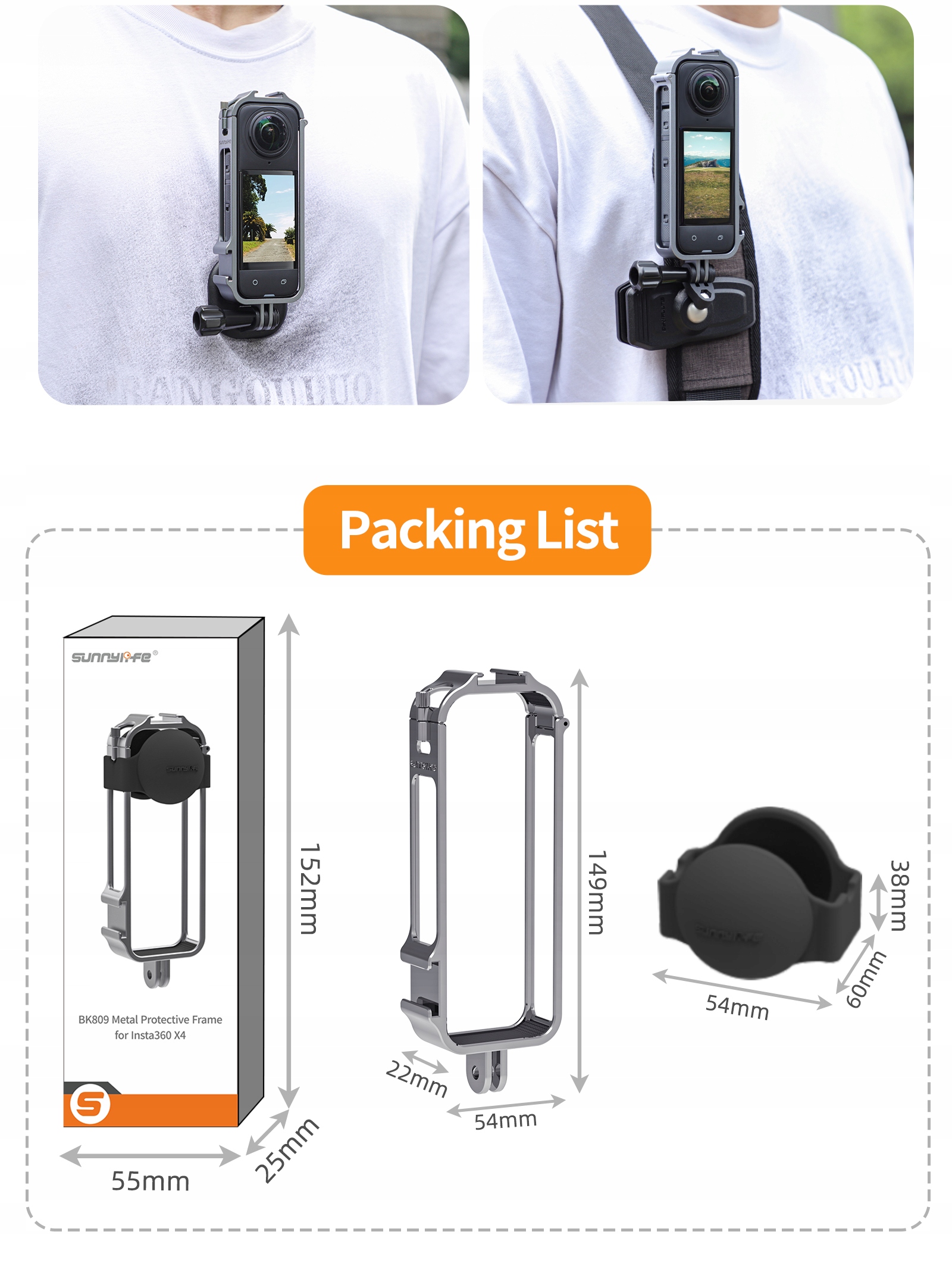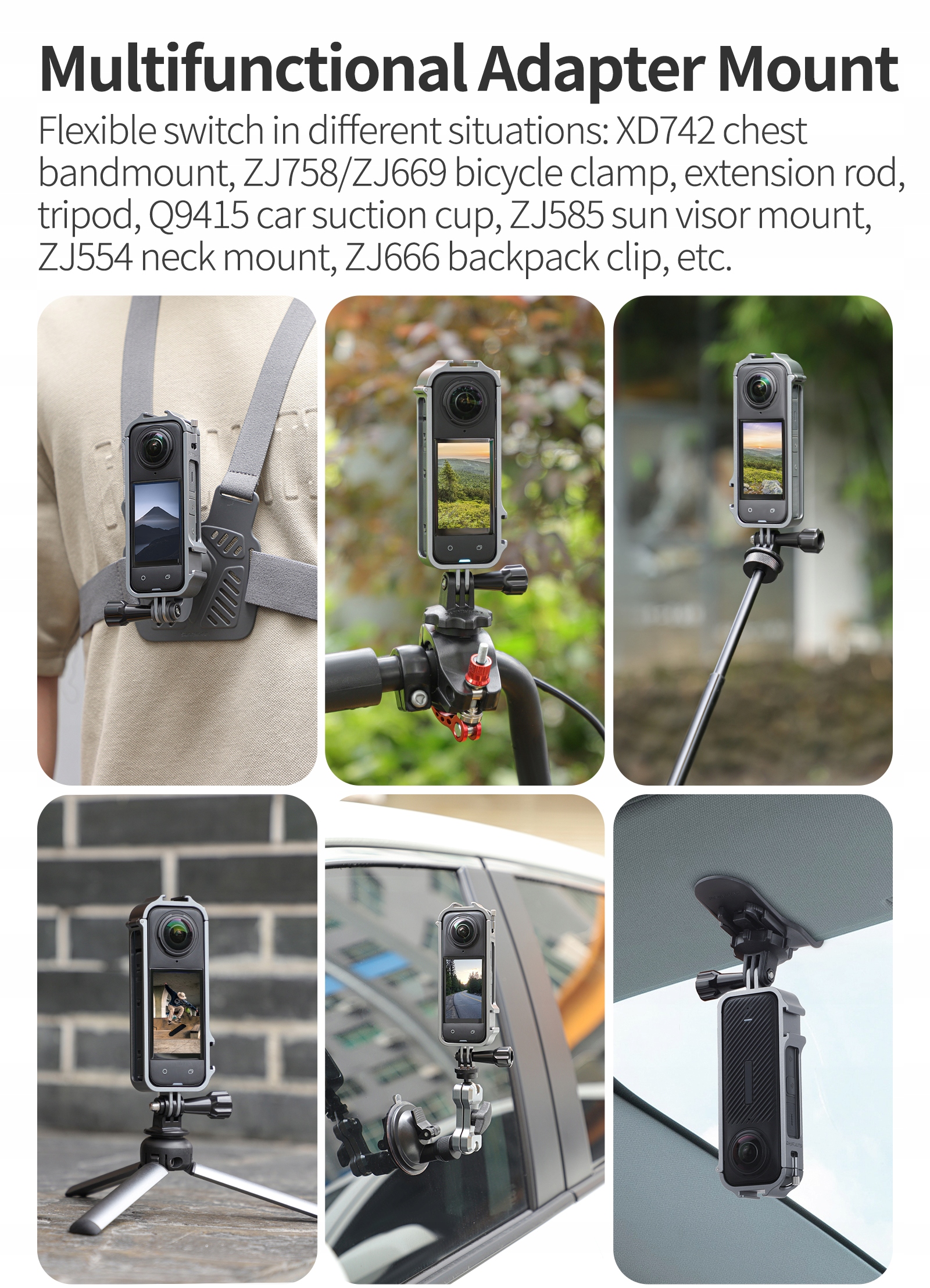 Расширьте возможности и легко подсоедините к Sunnylife XD742 ремень боковой платформы, зажим для рюкзака ZJ666, защитную крышку ZJ585, магнитную подвеску на шею ZJ554. опора, автомобильная присоска Q9415, подставка для велосипеда ZJ758/ZJ669, кронштейн, удлинитель и т. д.