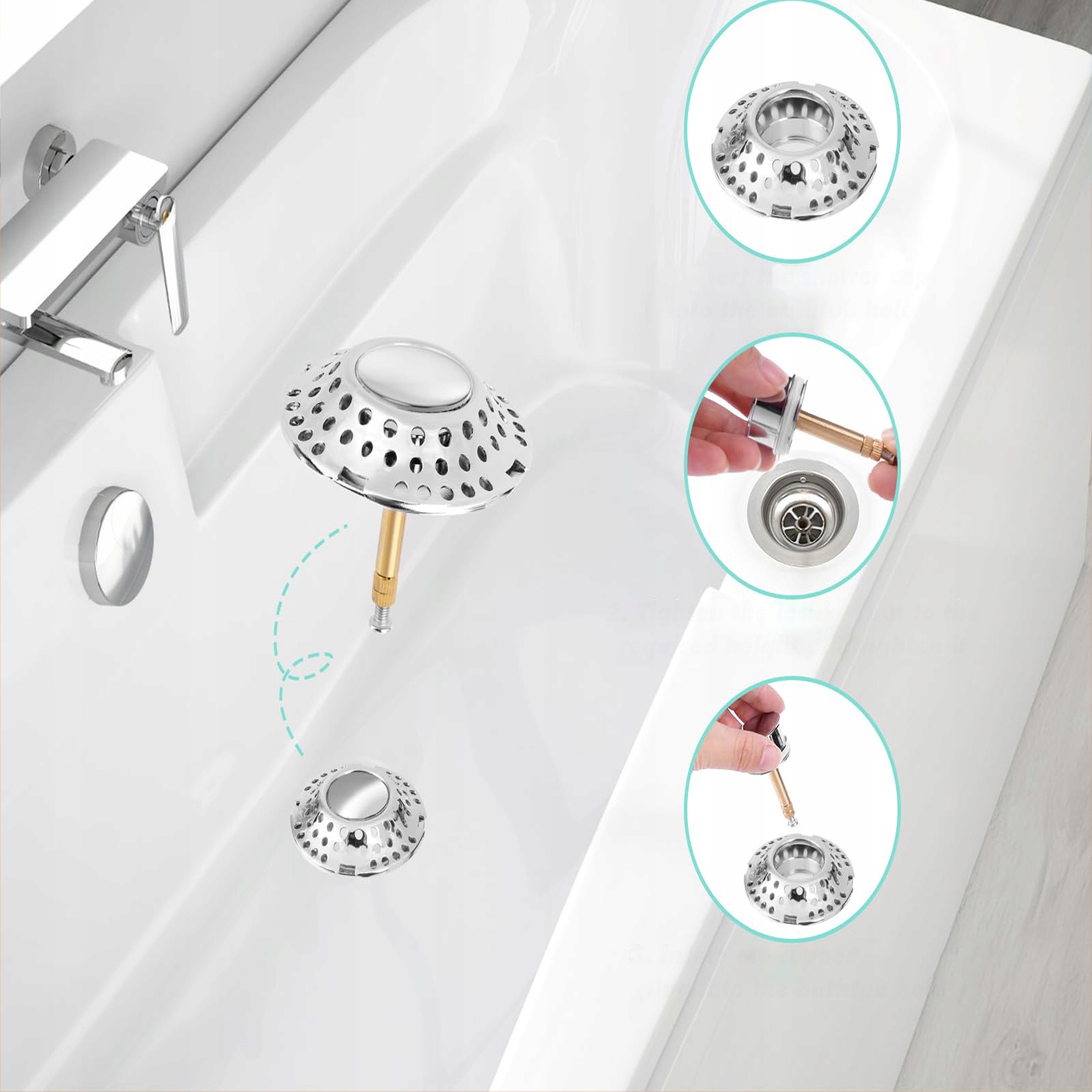 Стопор для ванни з функцією фільтра проти запаху, регульована висота