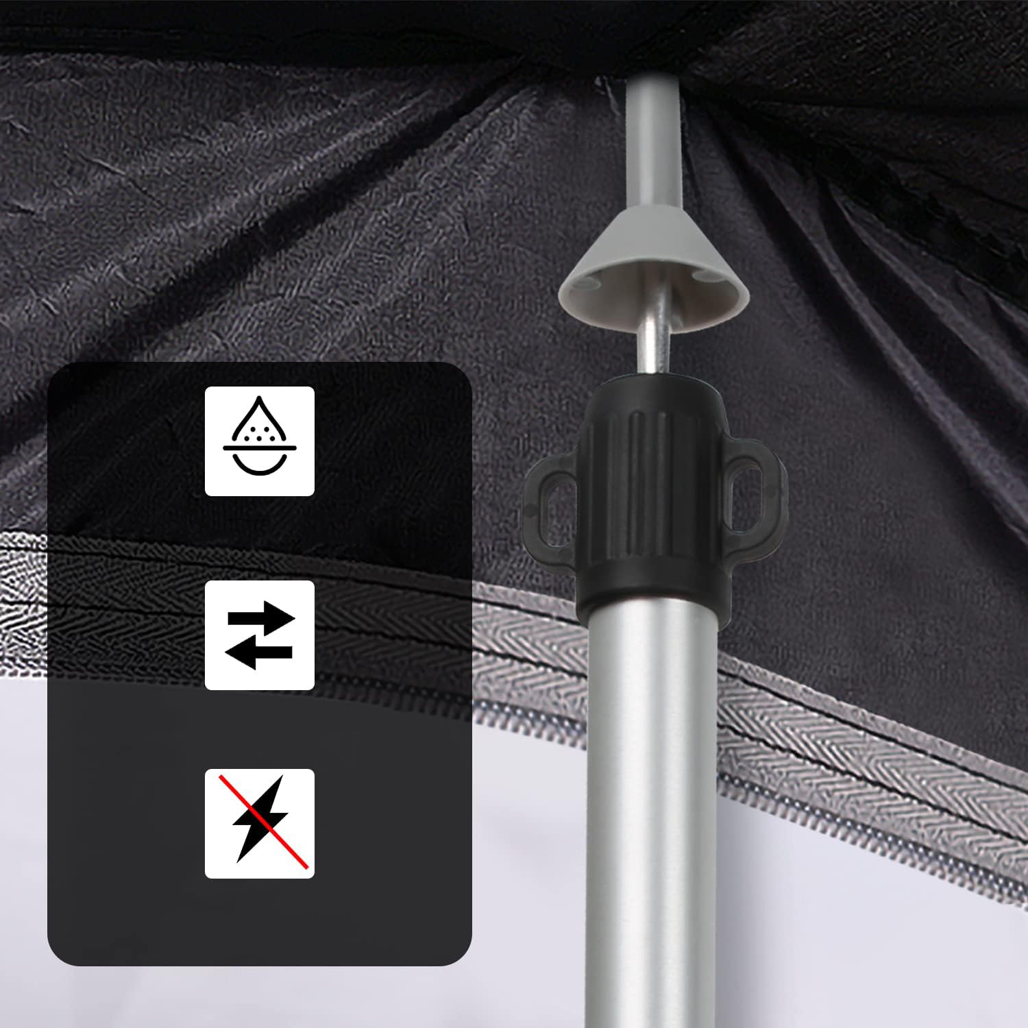 👍👍👍【 Прочная конструкция】 Прочный наконечник из оцинкованного железа обеспечивает максимальную устойчивость к сильному ветру в сочетании с креплением растяжки на верхнем соединителе. Противоскользящая кнопка ABS обеспечивает стабильное качание, даже когда вы раскладываете или регулируете большой брезент палатки. высота ваших шестов. Все эти детали помогут вам построить надежный брезент для защиты от неожиданных элементов, таких как сильный ветер, сильный дождь или снег.
