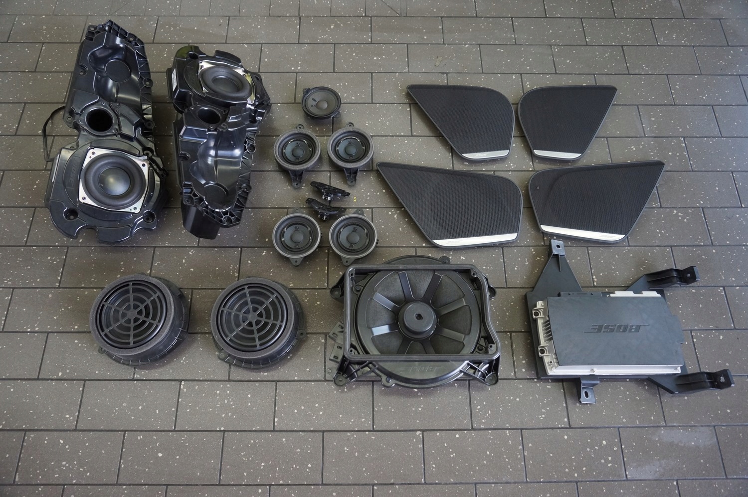 Предметом аукциона является оригинальная использованная звуковая система Bose для Audi A6 C7. Комплект включает в себя динамики от двери и консоли, сабвуфер и усилитель. Набор на 100% функционален. Это происходит из юридического источника.