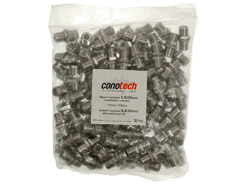 Популярный разъем для коаксиального кабеля стандартного размера, тип F. Обеспечивает соединение двух секций коаксиального кабеля с низкими потерями.