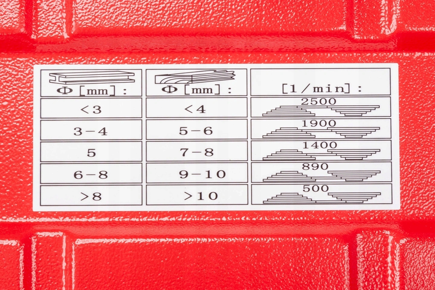 Столовая тренировка оснащена 5 градусов с регулировкой вращения , что значительно облегчает регулировку устройства к бурению в различных материалах, начиная с металла, древесины, стали, до пластмасс и других типов материалов. Выберите одну из пяти скоростей, положив ремень на шкив, который можно найти после подъема верхней крышки.