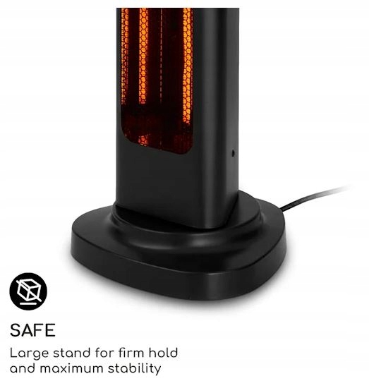 Инфракрасный обогреватель с классом защиты IP65защищает от пыли и водяных струй, а также также идеально подходит для использования на открытом воздухе. Безопасность также была принята во внимание: большое основание обеспечивает постоянное сцепление и максимальную устойчивость.