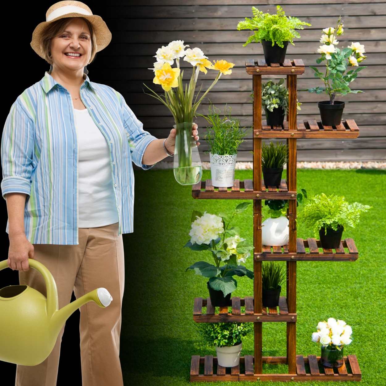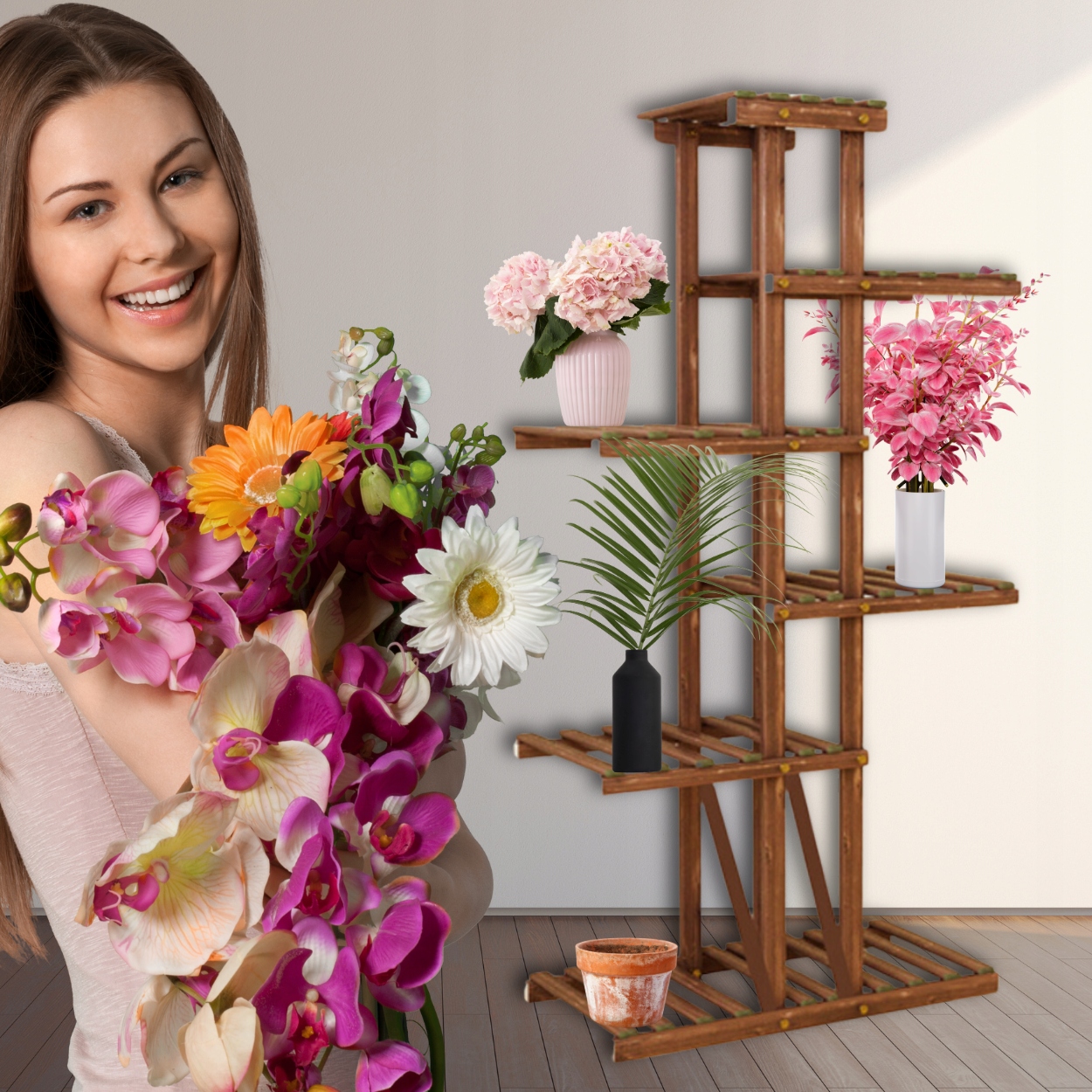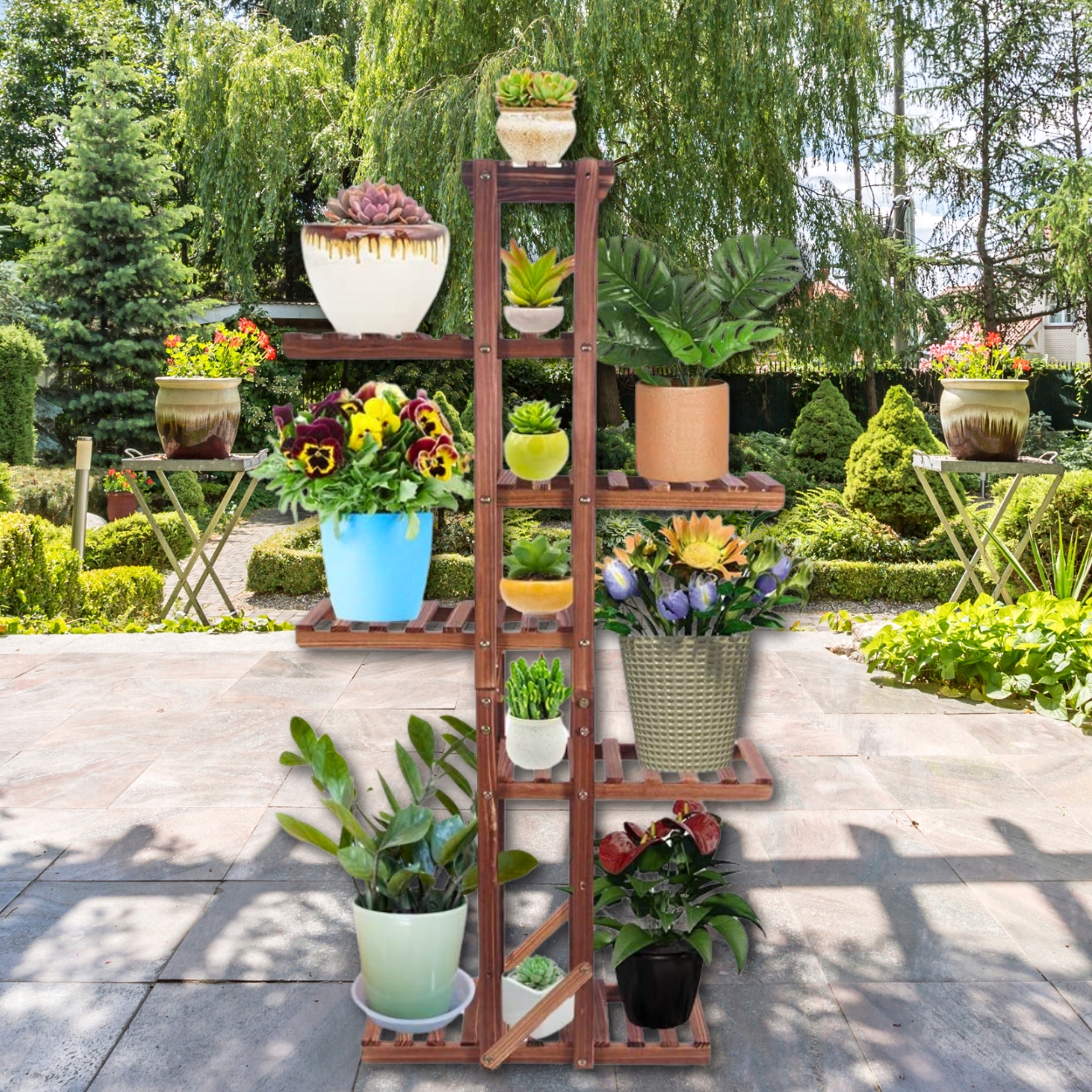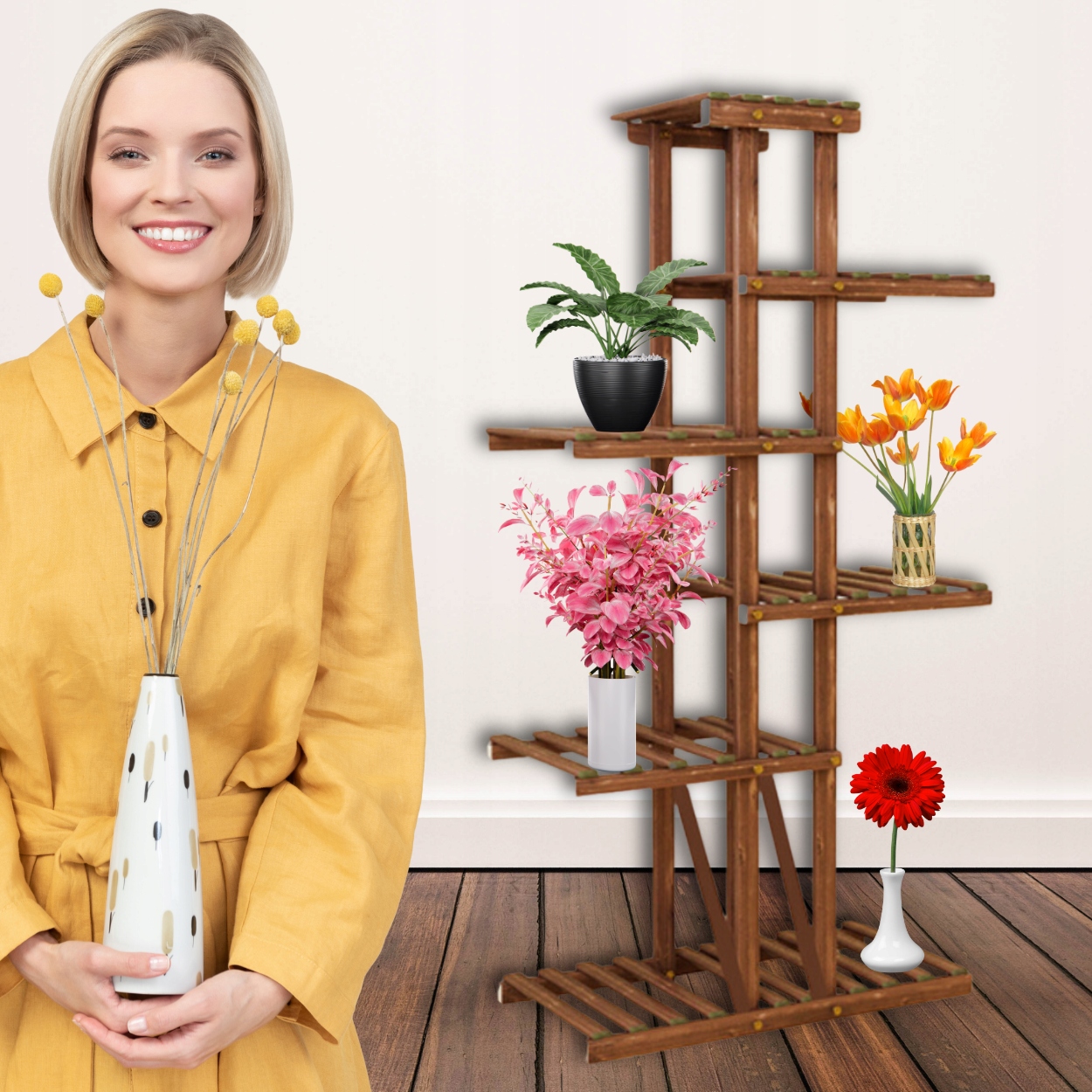 ➡ место для всех ваших растений! Наша цветочная кровать с высокой мощностью -это именно то, что вам нужно! Независимо от того, хотите ли вы украсить балкон, террасу, сад или интерьер вашего дома, наш стенд подойдет всем вашим любимым растениям . Забудьте о космических ограничениях - наша стойчная клумба была разработана для размещения большого количества горшков . Благодаря этому вы можете создать впечатляющие композиции растений, добавив очарование и жизнь в любое место, где вы его размещаете
