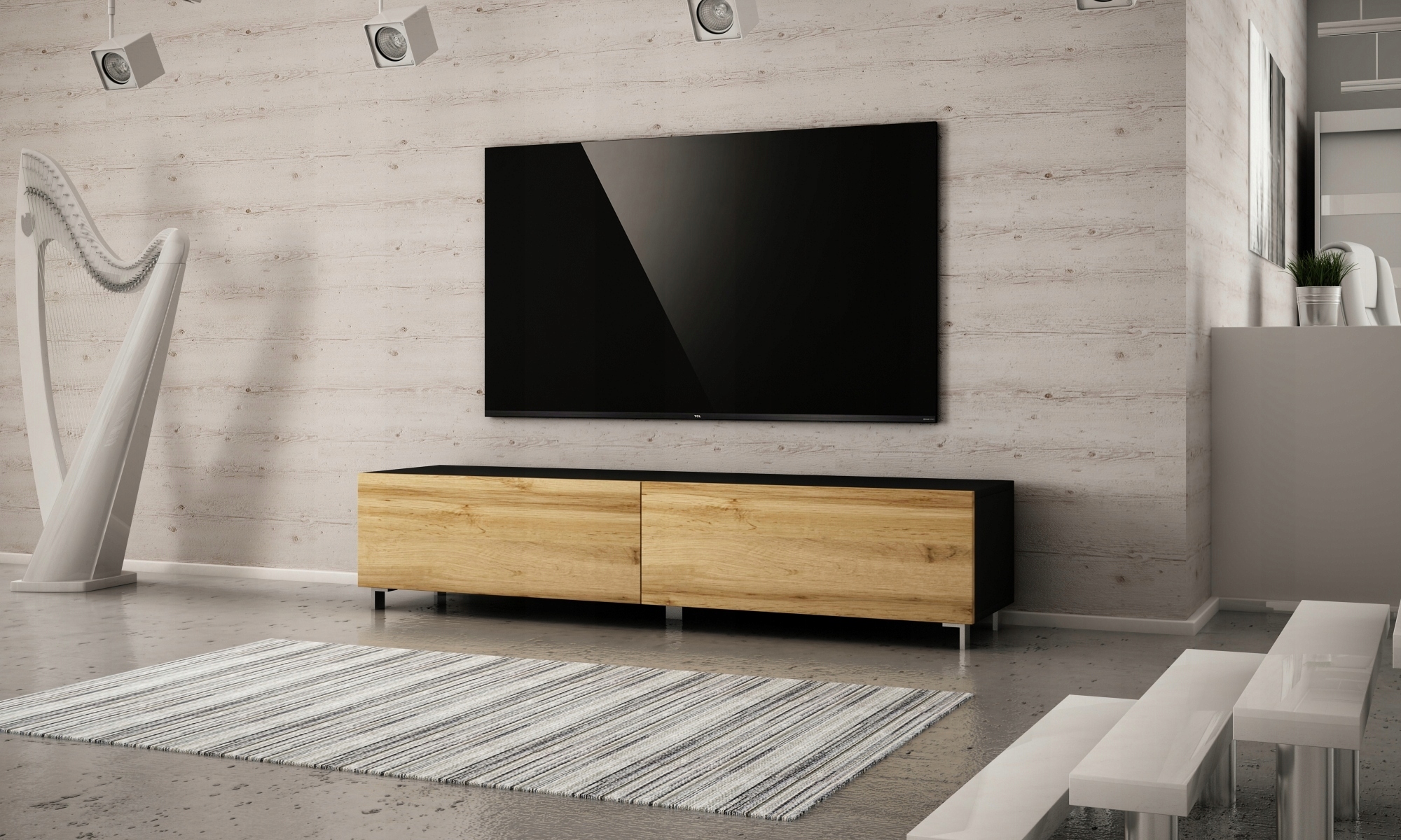 Стоящий RTV 180 - это современный шкаф, который благодаря простой и минималистской форме идеально подходит для любой гостиной. Две закрытые камеры, закрытые с закрылками в самом модном цвете этого сезона Oak Wotan, дадут элегантность любому интерьеру, а их емковые ниши будут размещать книги, игрушки и много мелочей. H2>