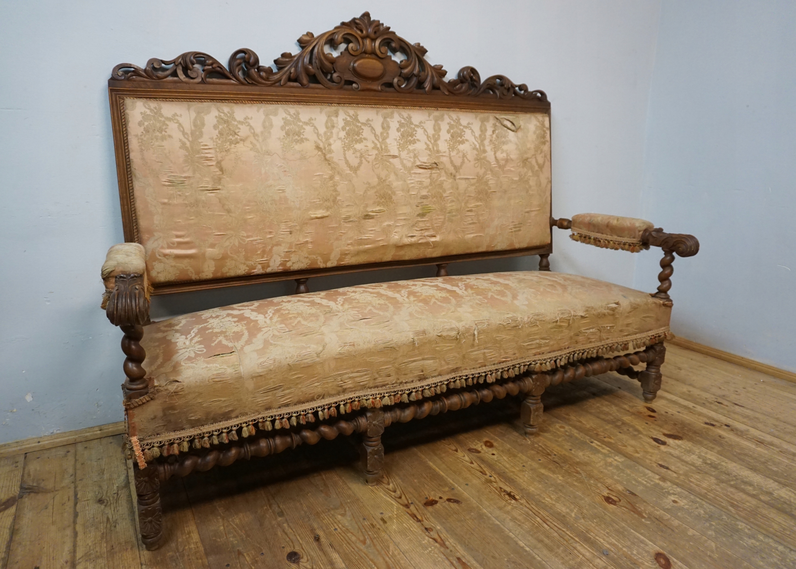 ДИВАН ИЗ ФРАНЦИИ, С ДЕРЕВЯННЫМИ ПРУЖИНАМИ И ОРЕХОМ. ПОД РЕМОНТ