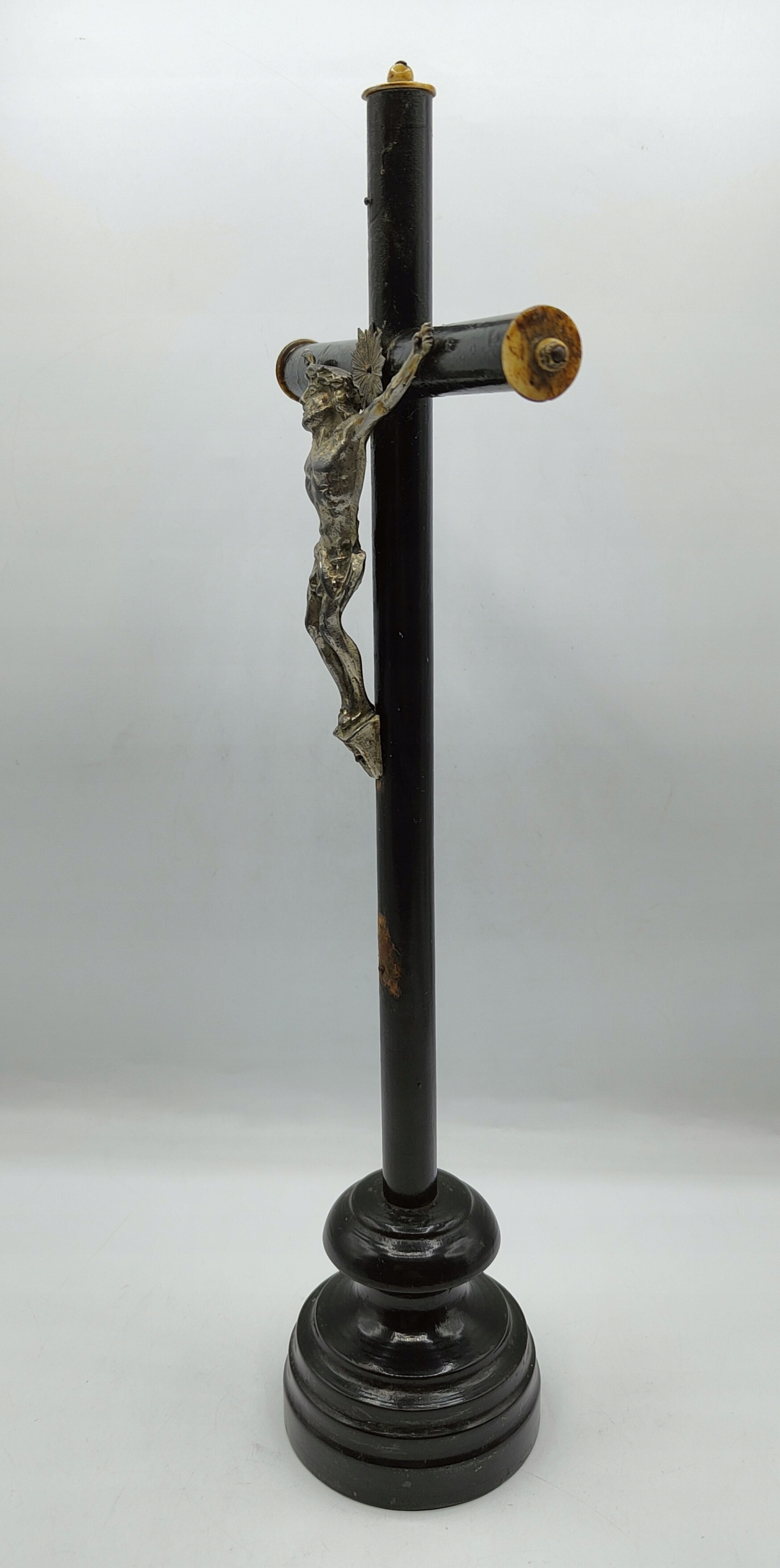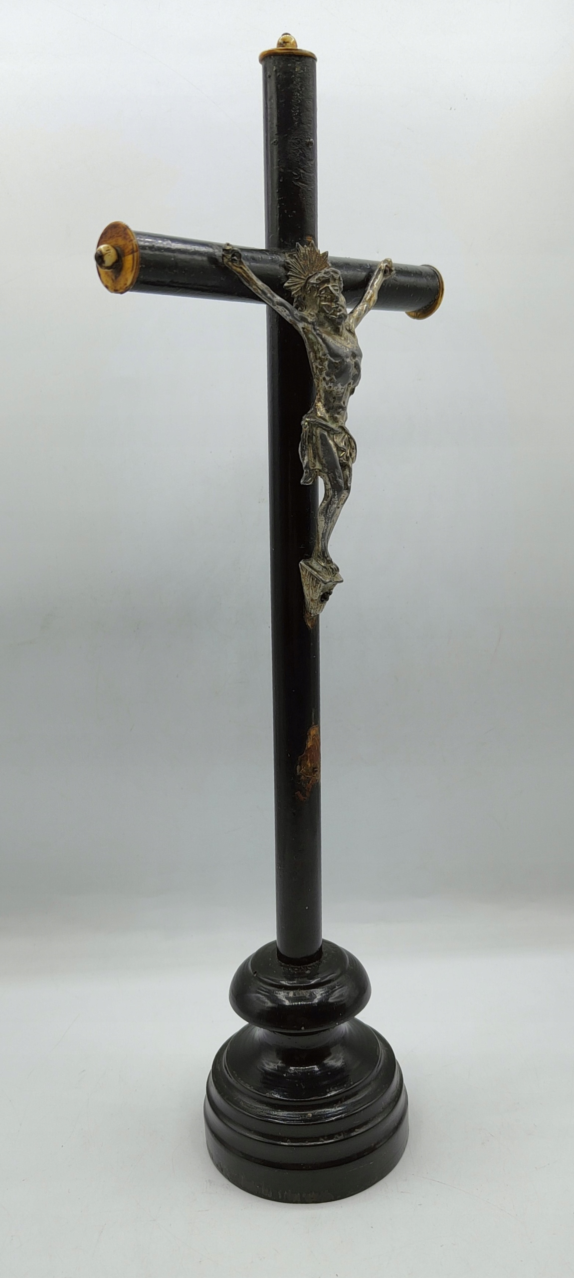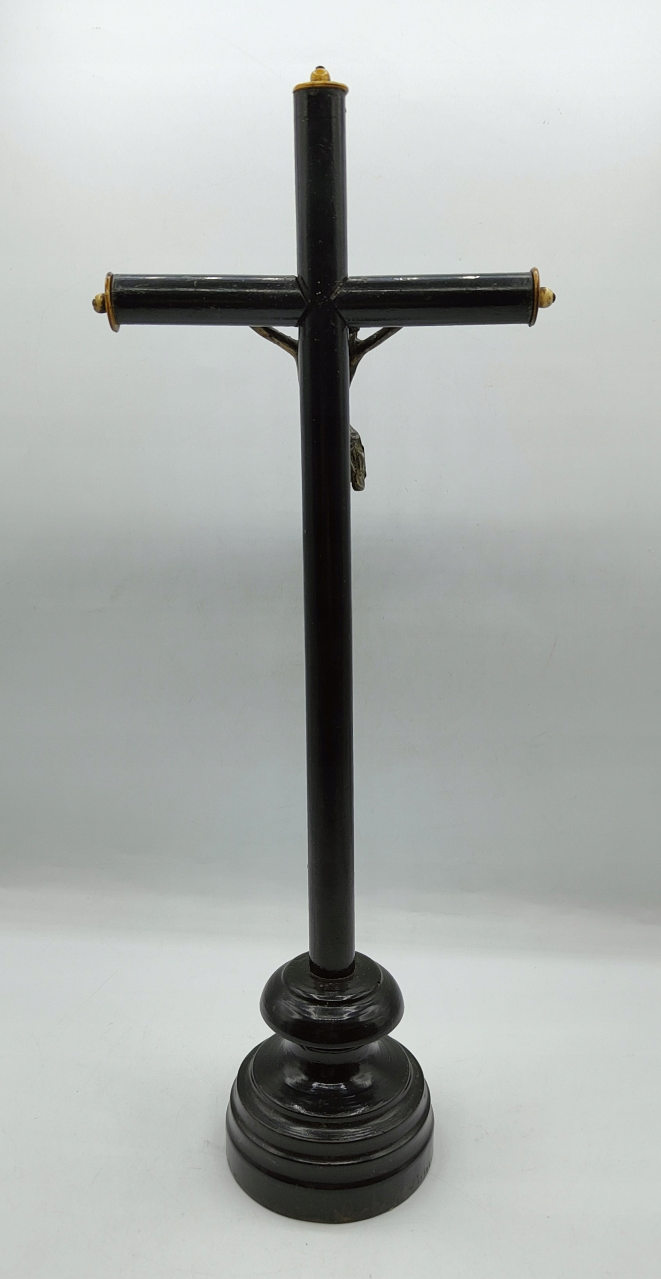 стоящий металл/дерево - очень старый КРЕСТ - большое распятие 26 см - черный
