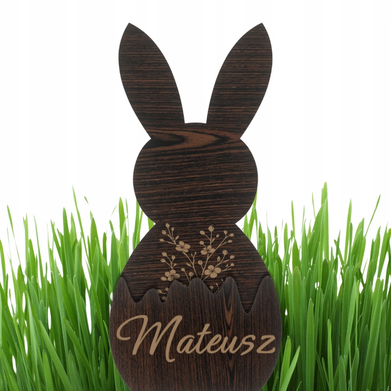 СТОЯЩИЙ ЗАЯЦ ПАСХАЛЬНЫЙ ОРНАМЕНТ ИМЕННО ЯЙЦО С ПОДСТАВКОЙ ДУБ ВЕНГЕ ГРАВИРОВКА