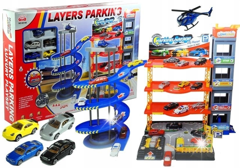Большая, трехэтажная парковка с лифтом и горкой наверняка доставит массу удовольствия каждому маленькому любителю пружин. Многоуровневый гараж с лифтом адаптирован под размеры машинки и вертолета, входящих в комплект, а также под маленькие ручки ребенка. Многоэтажная конструкция гаража очень устойчива, что гарантирует и безопасность, и приятное развлечение.