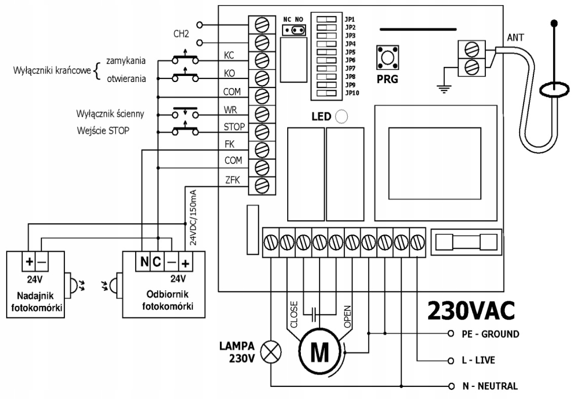 Устройство предназначено для дистанционного управления воротами с приводом от однофазного асинхронного двигателя переменного тока напряжением 230 В, обеспечивающего работу в двух направлениях. Имеет следующие функции: