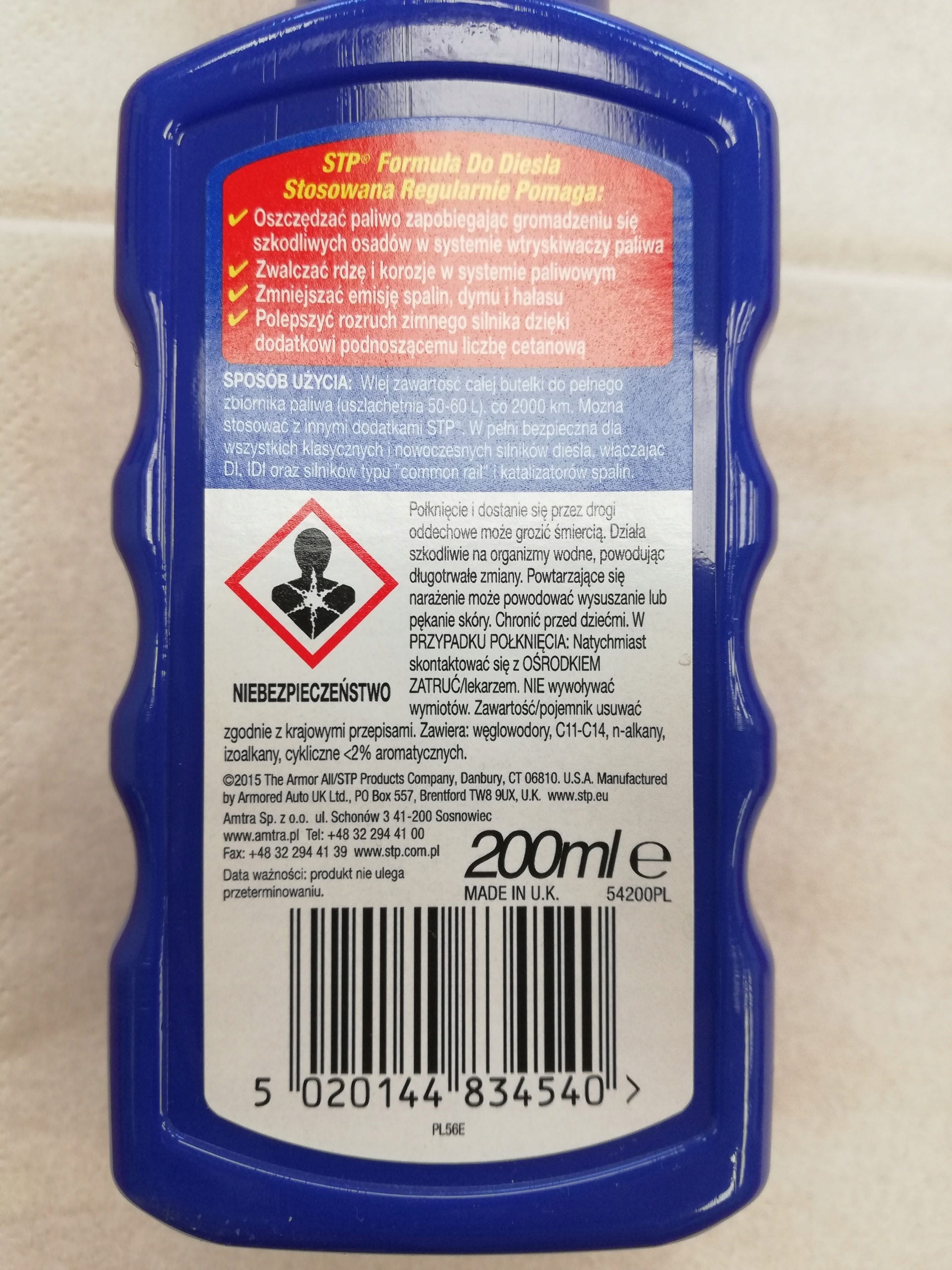 Просматривая «STP ФОРМУЛА ДЛЯ ДИЗЕЛЬНОГО РЕФІНІШЕРУ НА 200 мл», вы можете быть уверены, что данный товар из каталога «Добавки для дизельного топлива» будет доставлен из Польши и проверен на целостность. В цене товара, указанной на сайте, учтена доставка из Польши. Внимание!!! Товары для Евросоюза, согласно законодательству стран Евросоюза, могут отличаться упаковкой или наполнением.