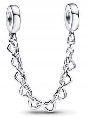 Цепочка безопасности, связанная с сердечками - Серебро 925