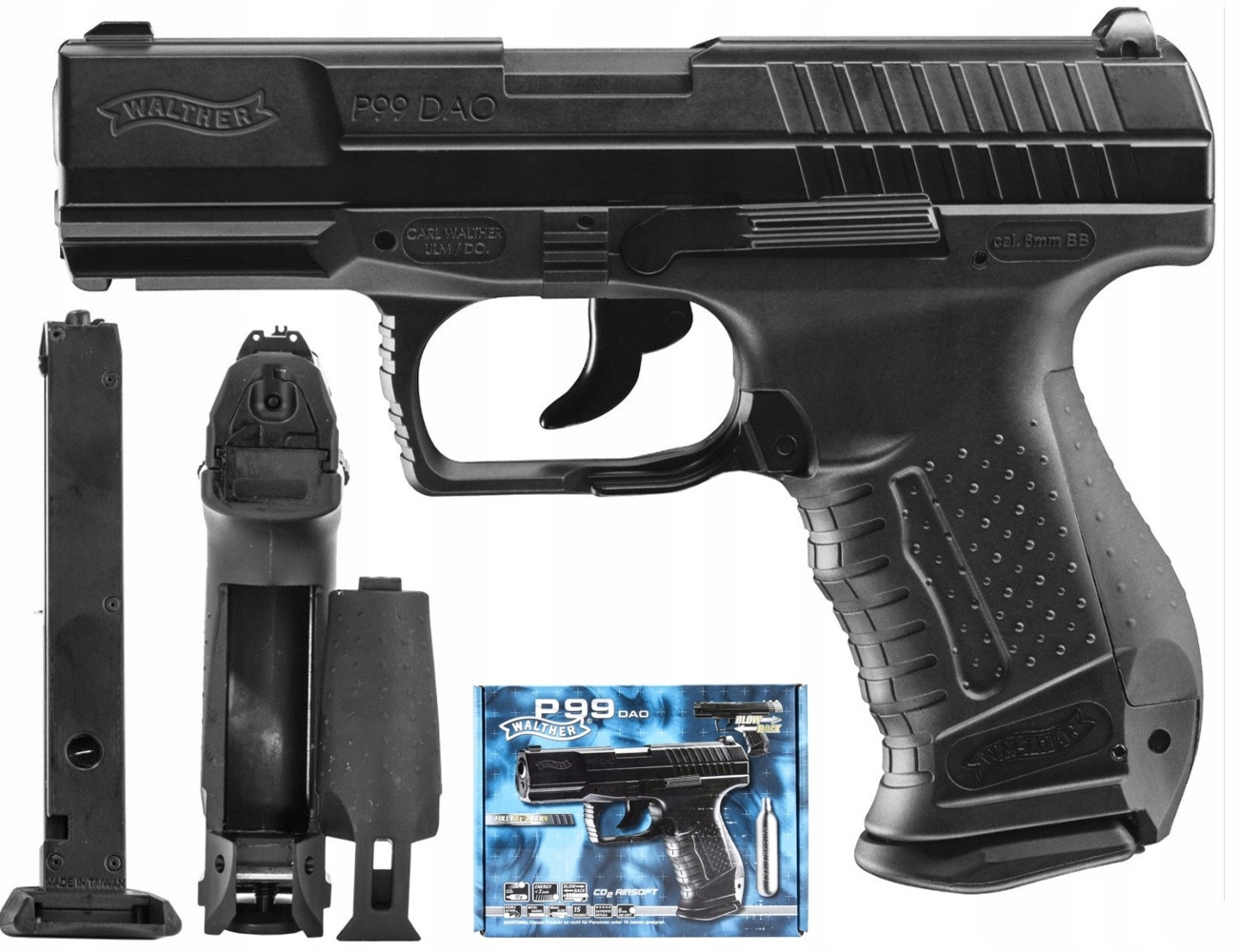 Walther P99 DAO - мощная копия страйкбола CO2, газовая система Blow-Back, металлический замок, 2 магазина емкостью по 15 патронов каждый, 520 кадров в секунду, сила 2Дж