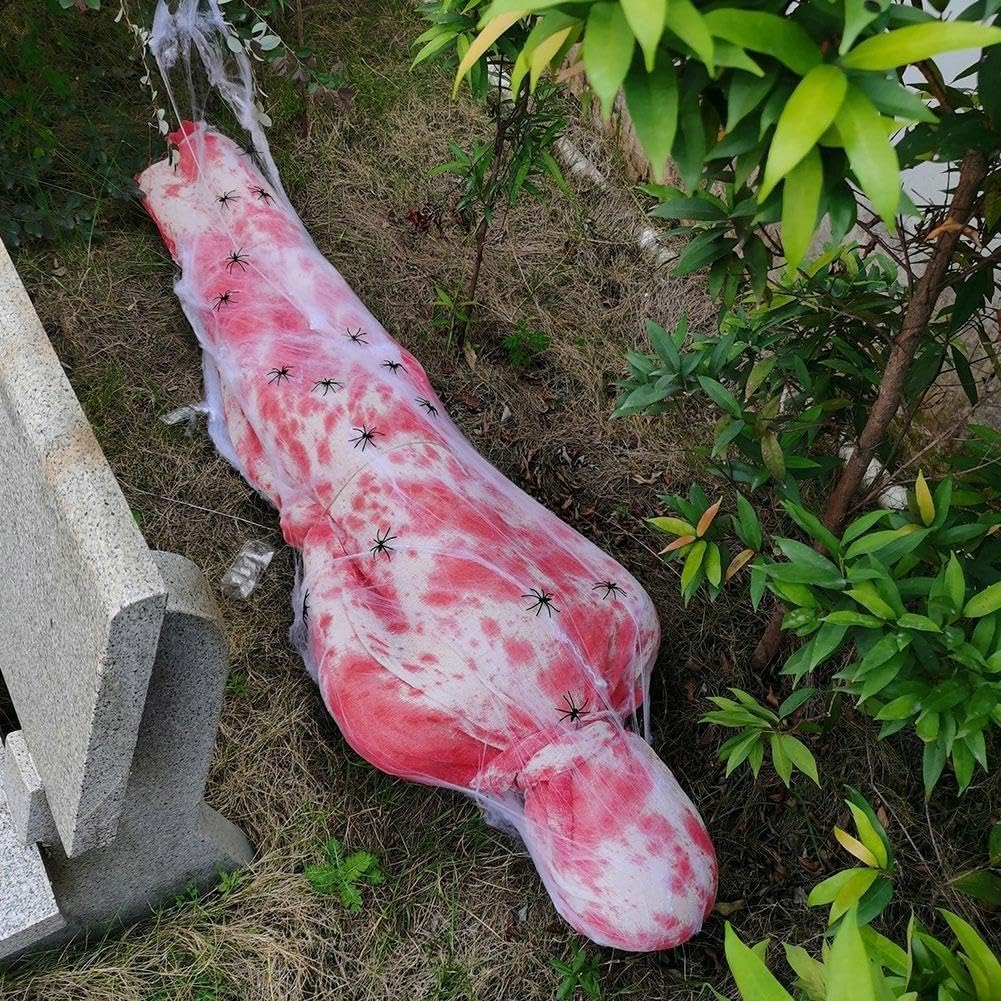 Опора «жертва Хэллоуина» быстро устанавливает: просто надуть поддержку ручным насосом, обернуть тело и головы полосками материала и, наконец, украсить паутины и паутины. Вы можете легко создать призрачный визуальный эффект без каких -либо сложных шагов.