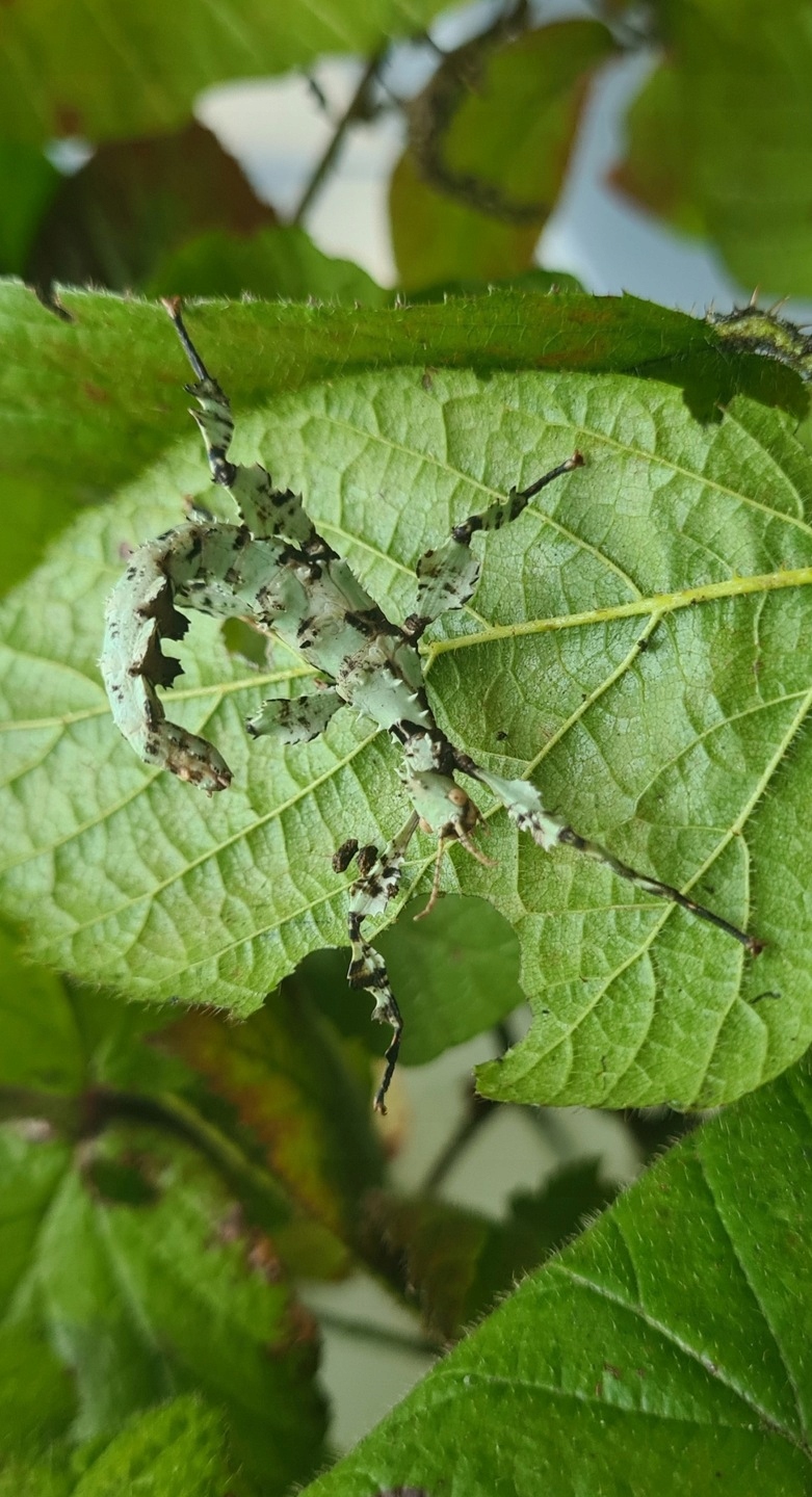 Extatosoma tiaratum Lichen Morph — красочная разновидность австралийской фазмиды, характеризующаяся бледно-зеленым оттенком.