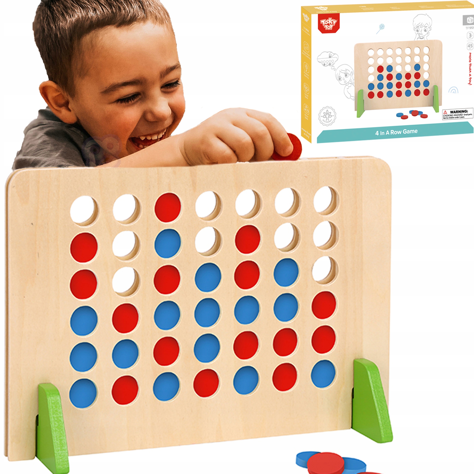 TOOKY TOY Деревянная логическая игра 4 в ряд, 45 деталей