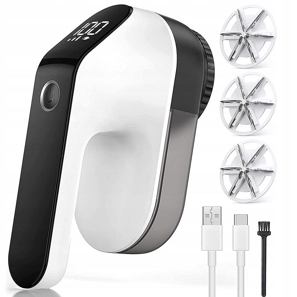 Электрическое устройство для удаления ворса с перезарядкой через USB, 3-скоростная регулировка, светодиодный дисплей, 3 запасных лезвия