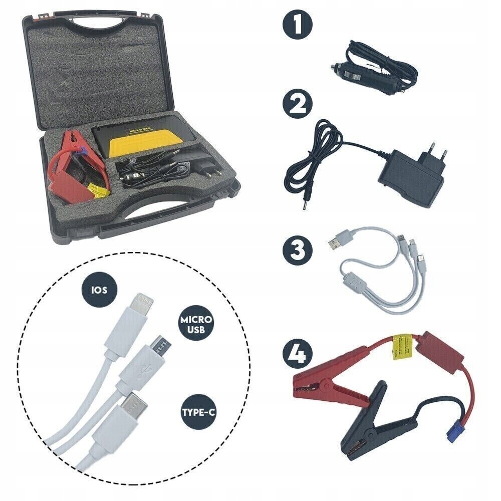 jump Starter Booster Booster Powerbank Hammer Hammer Cable Set 16800mah