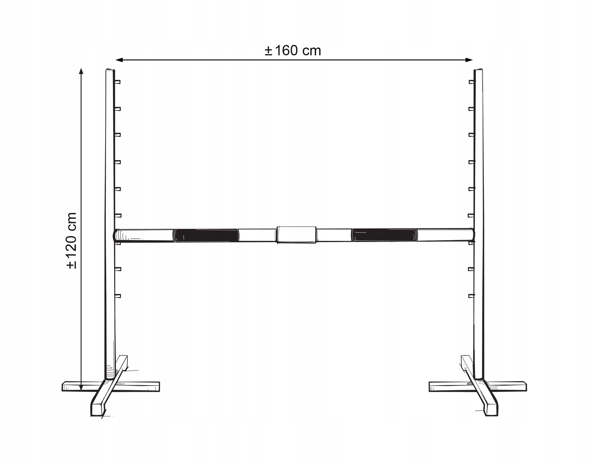 Длина каждой перекладины 160 см. Он двухчастный, состоящий из двух балок длиной 80 см со специальным соединителем. Это позволяет получить длинную устойчивую перекладину. А сложив балки, вы получаете удобный размер, который облегчает хранение или транспортировку.