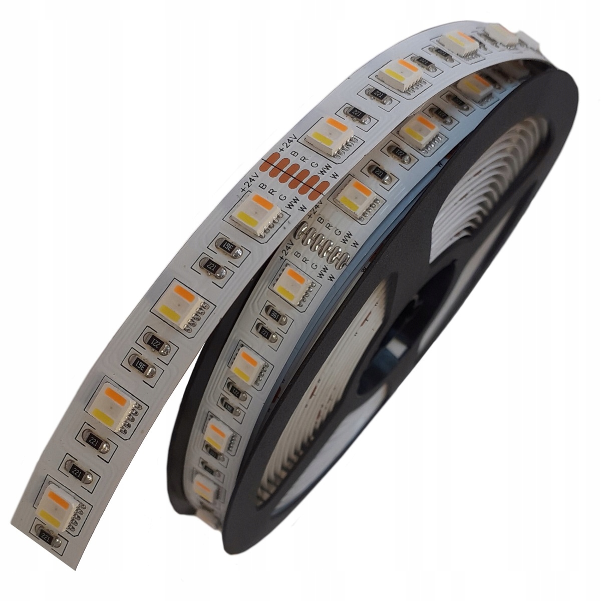 Самое современное решение — лента RGB+CCT с отдельными цветами (R+G+B+W+WW). Что мы уже знаем, так это то, что невозможно получить чистый белый цвет, ни теплый, ни холодный, от обычного RGB-светодиода SMD5050. В ответ на потребности клиентов были созданы ленты, содержащие диоды RGB и CCT. В этом решении белый цвет исходит от диода CCT - двойного белого - содержащего теплый и холодный диод в одном чипе, благодаря чему мы имеем весь диапазон белого света от холодного, нейтрального и теплого, а белый цвет можно дозировать независимо от многоцветного диода. Ленты RGB+CCT требуют соответствующих драйверов. Светодиодная лента шириной 10 мм с чередующимися диодами SMD 5050. Светодиодная лента имеет 300 диодов по 5 метров (60/метр) и может обрезаться каждые 10 см. Потребляемая мощность всего рулона составляет 72 Вт – 14,4 Вт/м. Лента в рулоне - 5 м - заканчивается кабелем с 6-контактным разъемом.