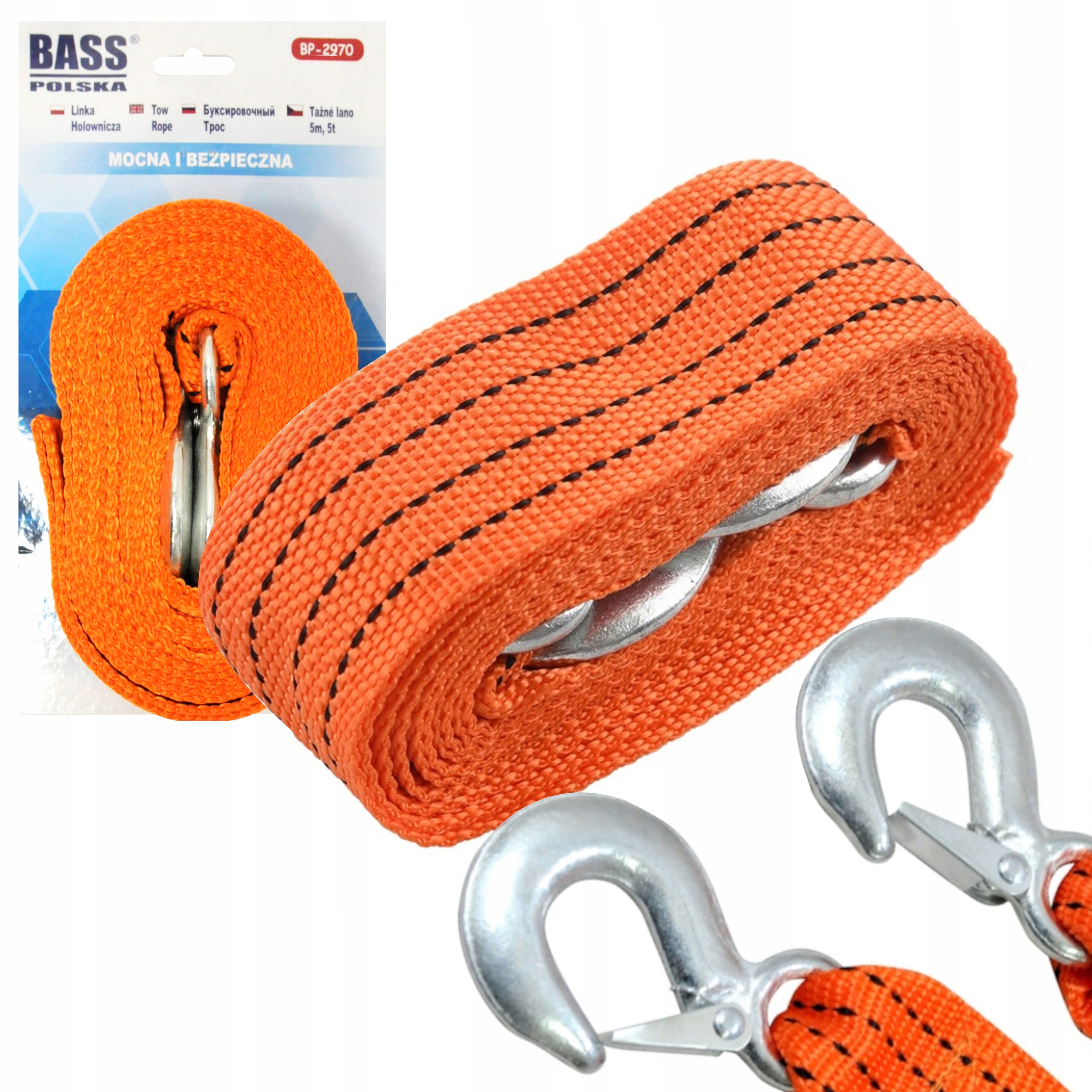 》》》 БУКСИРОВОЧНЫЙ РЕМНЬ С КРЮЧКАМИ 5M 5TON BASS POLSKA ® BP-2970 《《《