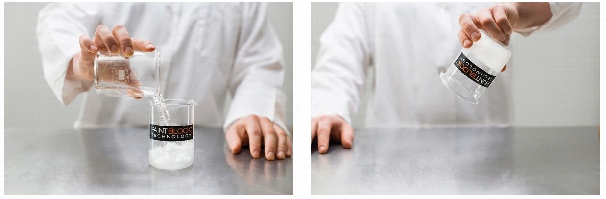 В технологии PaintBlock используется супервпитывающий полимерный состав, который вступает в реакцию с водой в латексной краске и мгновенно превращается в гель, создавая микробарьер, предотвращающий проникновение краски и давая четкие и чистые линии рисования. Frog Tape — единственная лента на Земле, использующая эту технологию, поэтому это единственная лента, которой профессиональные маляры доверяют свою работу.