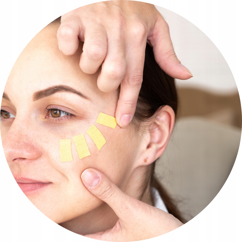 - благодаря тейпам поднимем овал лица, разгладим морщины и уменьшим отеки