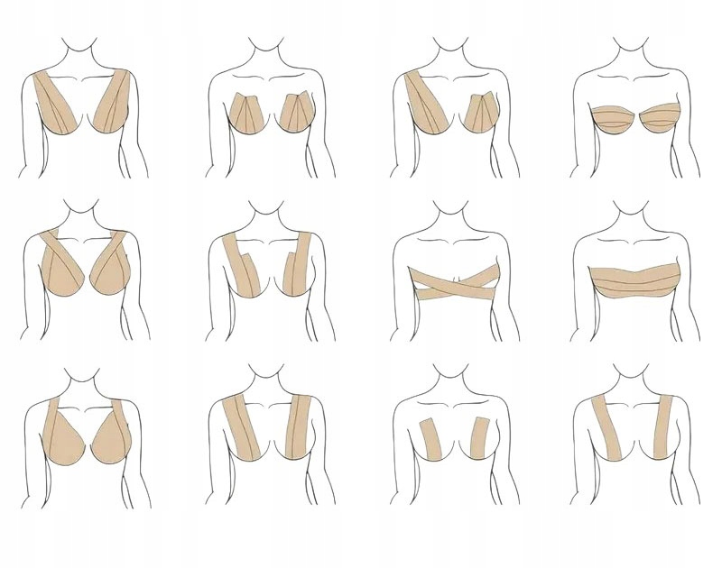 ✅ Прочный, но деликатный клей - безопасен для кожи, не вызывает раздражения ✅ Гибкий и дышащий материал - адаптируется к движениям тела ✅ Незаметен под одеждой - идеально подходит для платьев с глубоким вырезом, открытой спиной или без бретелек ✅ Водонепроницаемый и прочный - также подходит для жарких дней или во время танцев