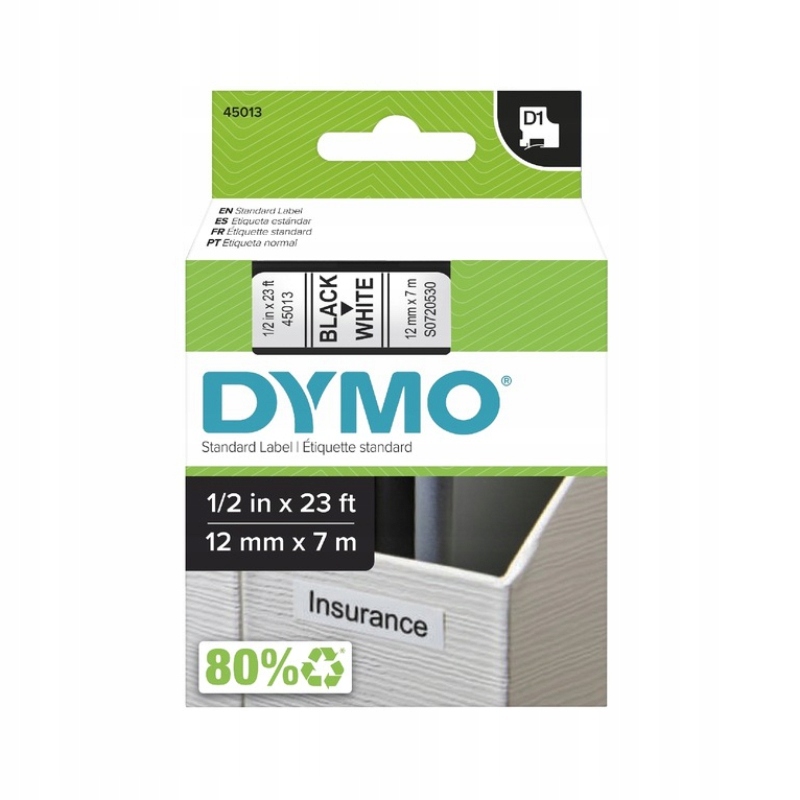 Лента для принтера Dymo D1 45013 12 мм х 7 м, черная/белая