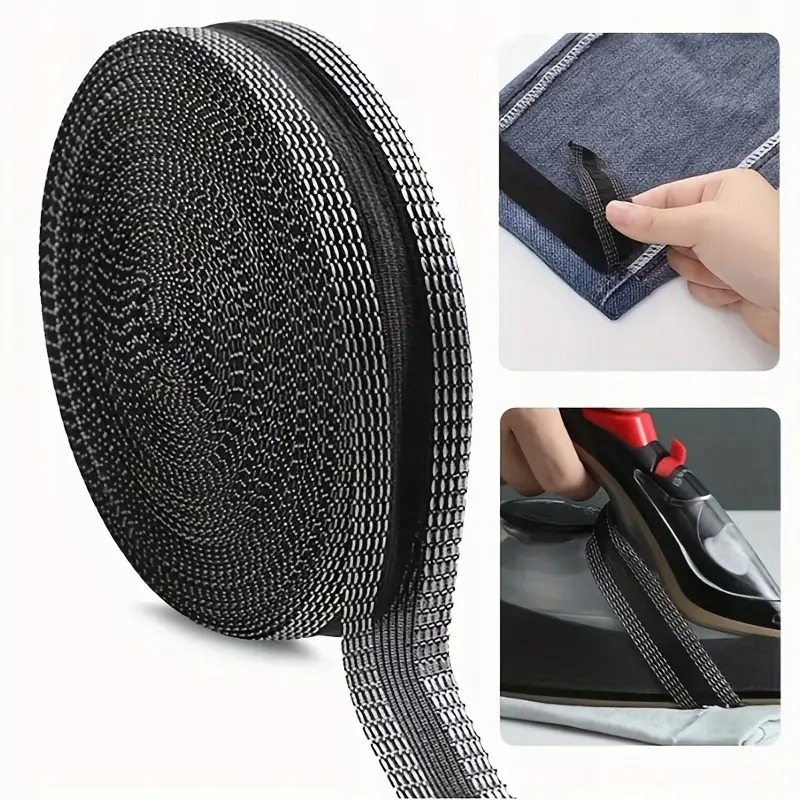 - лента используется для легкого и долговечного разрыва материалов, таких как брюки, юбки, шторы или постельные принадлежности, без необходимости шитья.