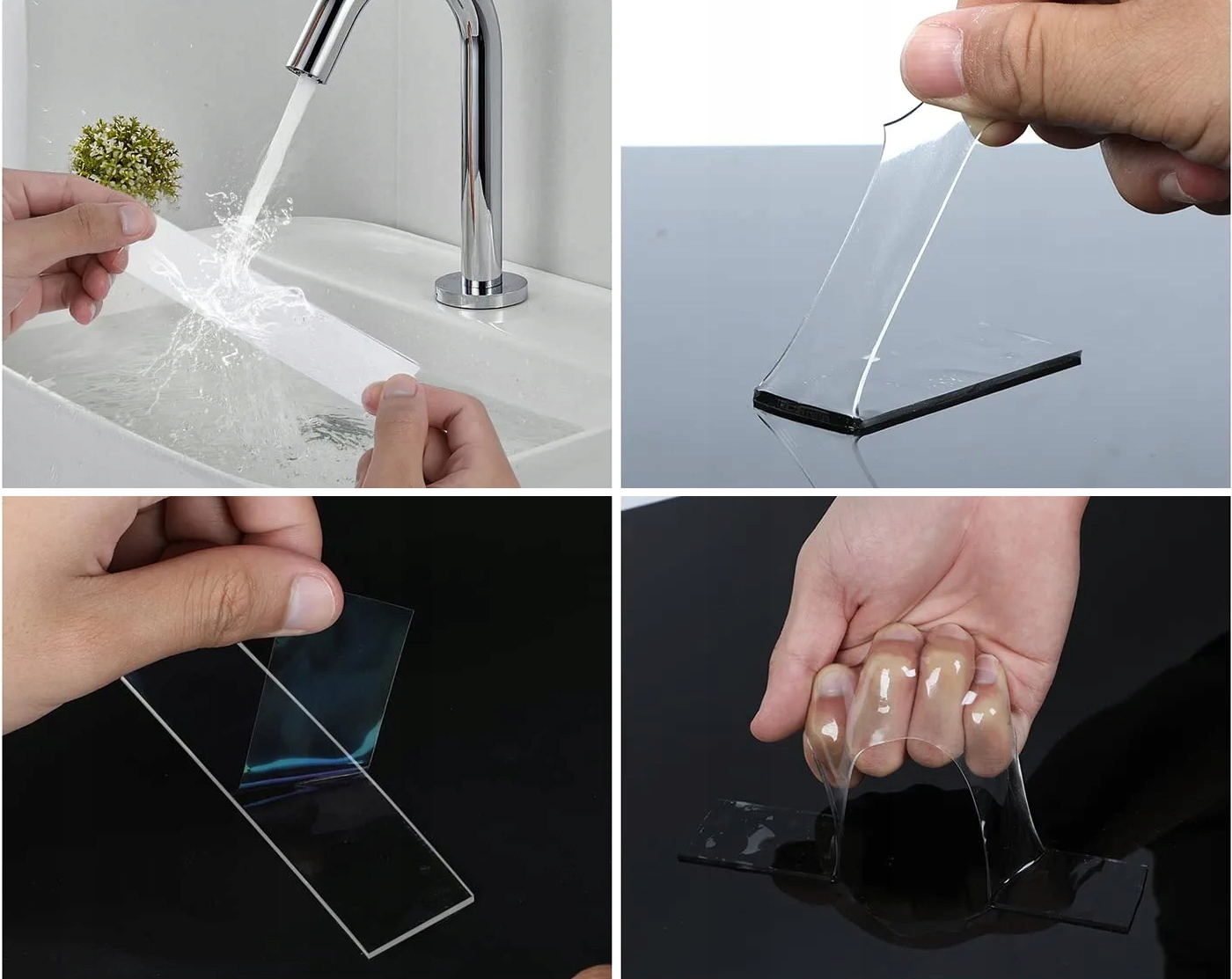 Моющаяся, многоразовая, бесследная и прозрачная — если лента случайно испачкается, просто промойте ее холодной водой и высушите, чтобы восстановить вязкость, не используйте салфетки для чистки или моющие средства.