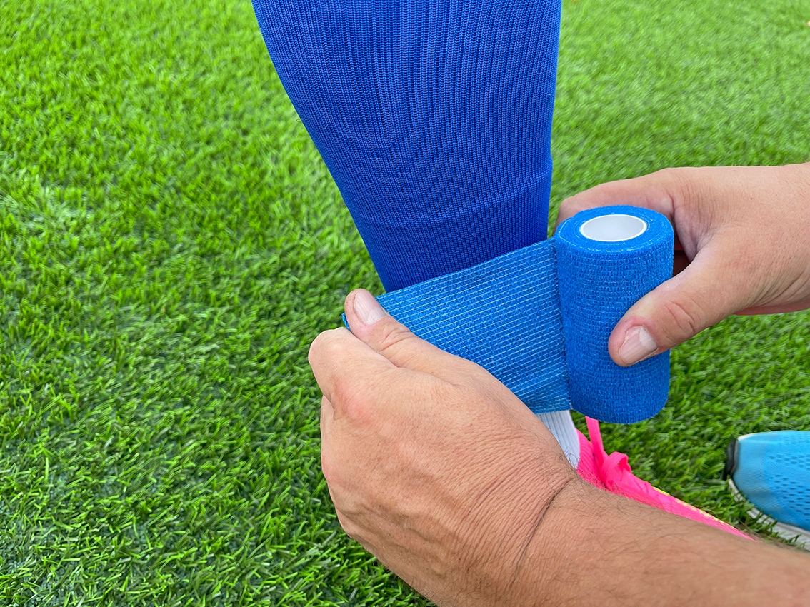 Просто намотайте повязку чуть выше лодыжки, одновременно стабилизируя протектор, помещенный под носок, что не может вызвать дискомфорт во время динамичной игры в футбол .