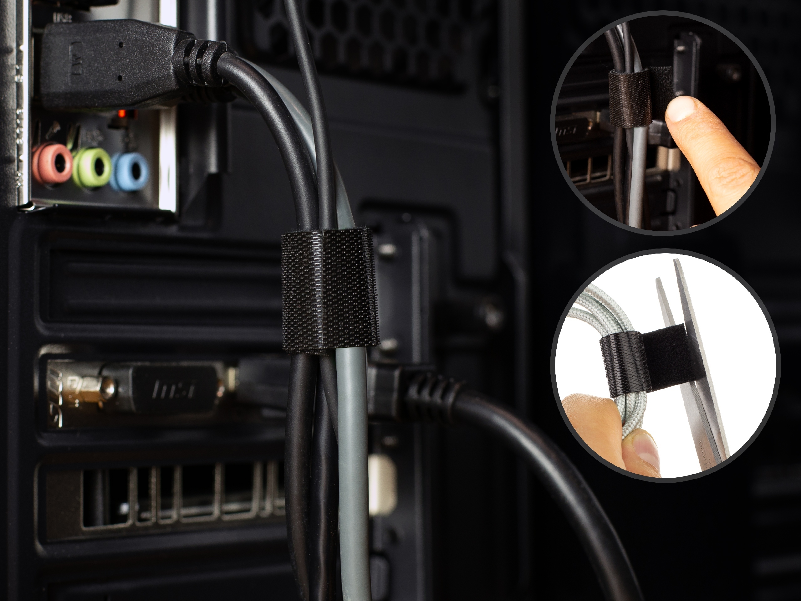 Back to Back - двухсторонняя система липучек (одна сторона крючок, другая сторона бархат), которая позволяет организовывать провода, кабели и многое другое. Они не повреждают кабели, легко снимаются и могут использоваться повторно.