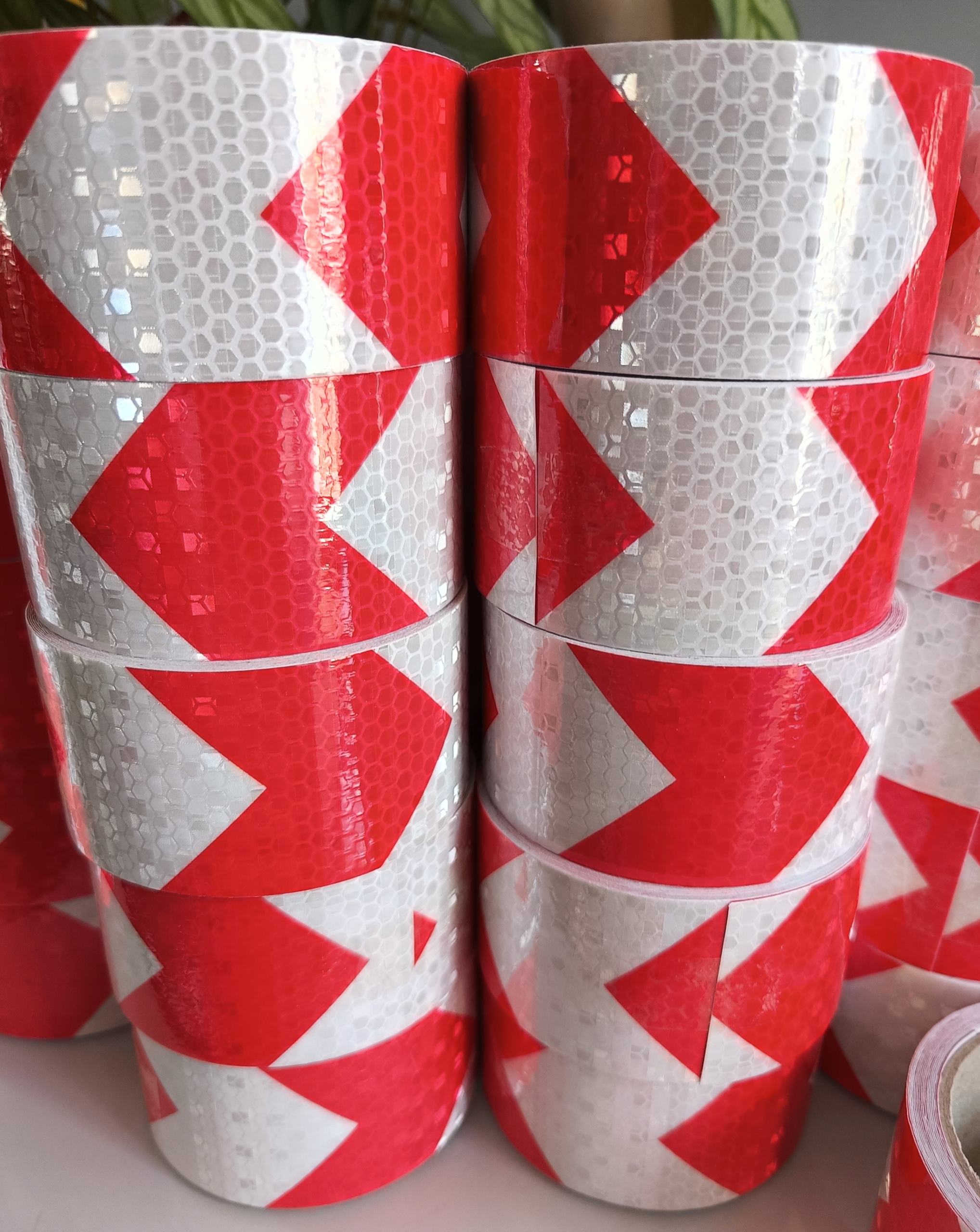 ЛЕНТА СВЕТООТРАЖАЮЩАЯ САМОКЛЕЯЩАЯСЯ ПРЕДУПРЕЖДАЮЩАЯ СВЕТООТРАЖАЮЩАЯ КРАСНАЯ БЕЛАЯ 5м