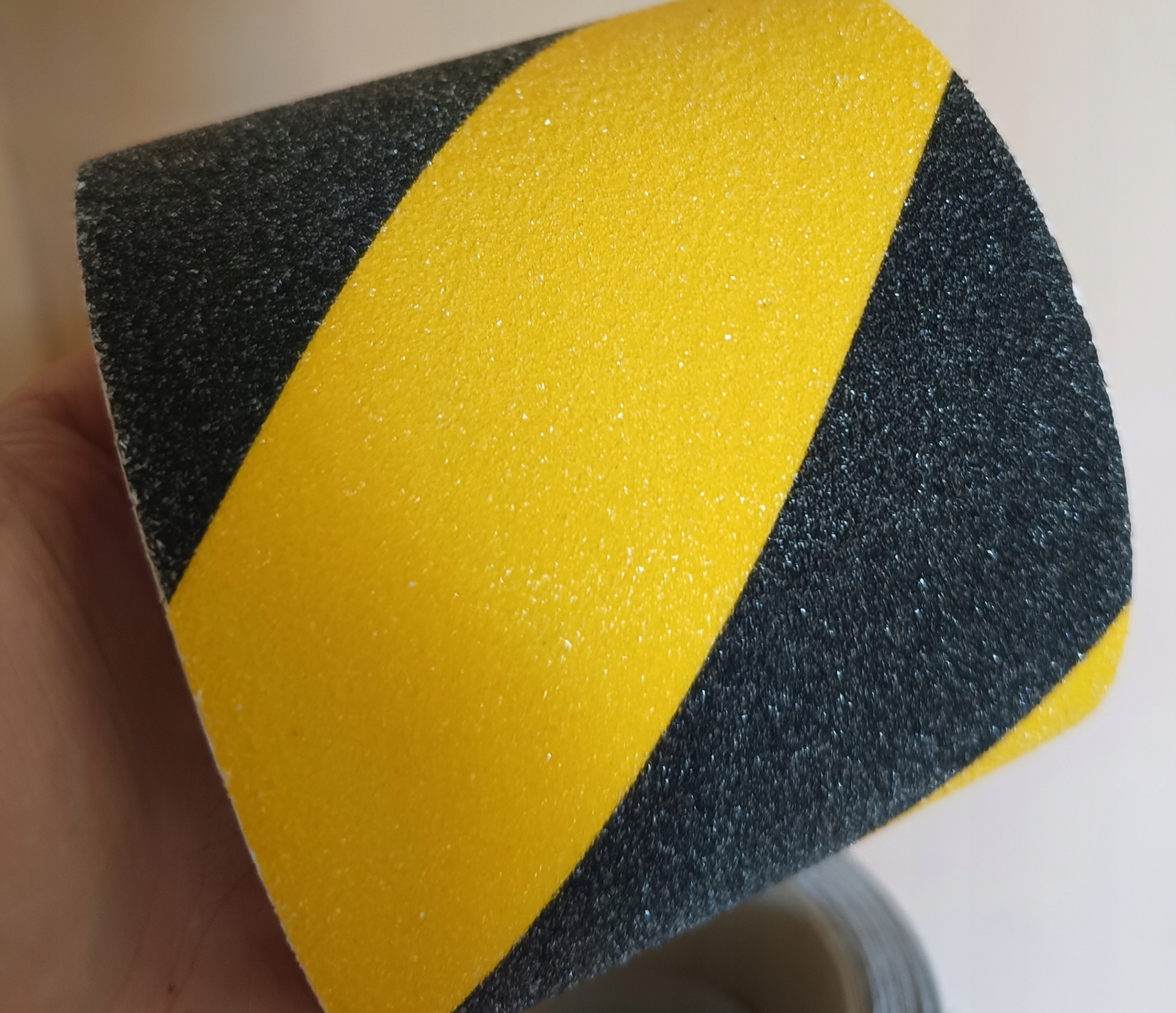 Стрічка антиковзаюча ЖОВТА ЧОРНА 100мм 6м 10СМ попереджувальна МАРКУВАННЯ