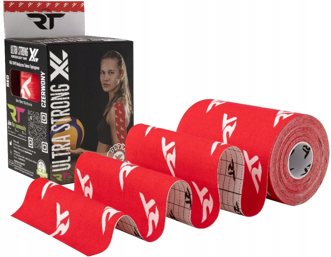 Стрічка REA TAPE Ultra Strong XL Kinesiology Tejp 10смx5м червона