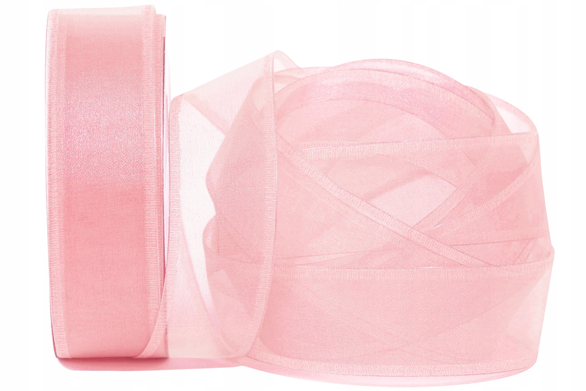 КРИСТАЛЛИЧЕСКАЯ ШИФОНОВАЯ ЛЕНТА 4см/10м ПОРОШКОВАЯ РОЗОВАЯ
