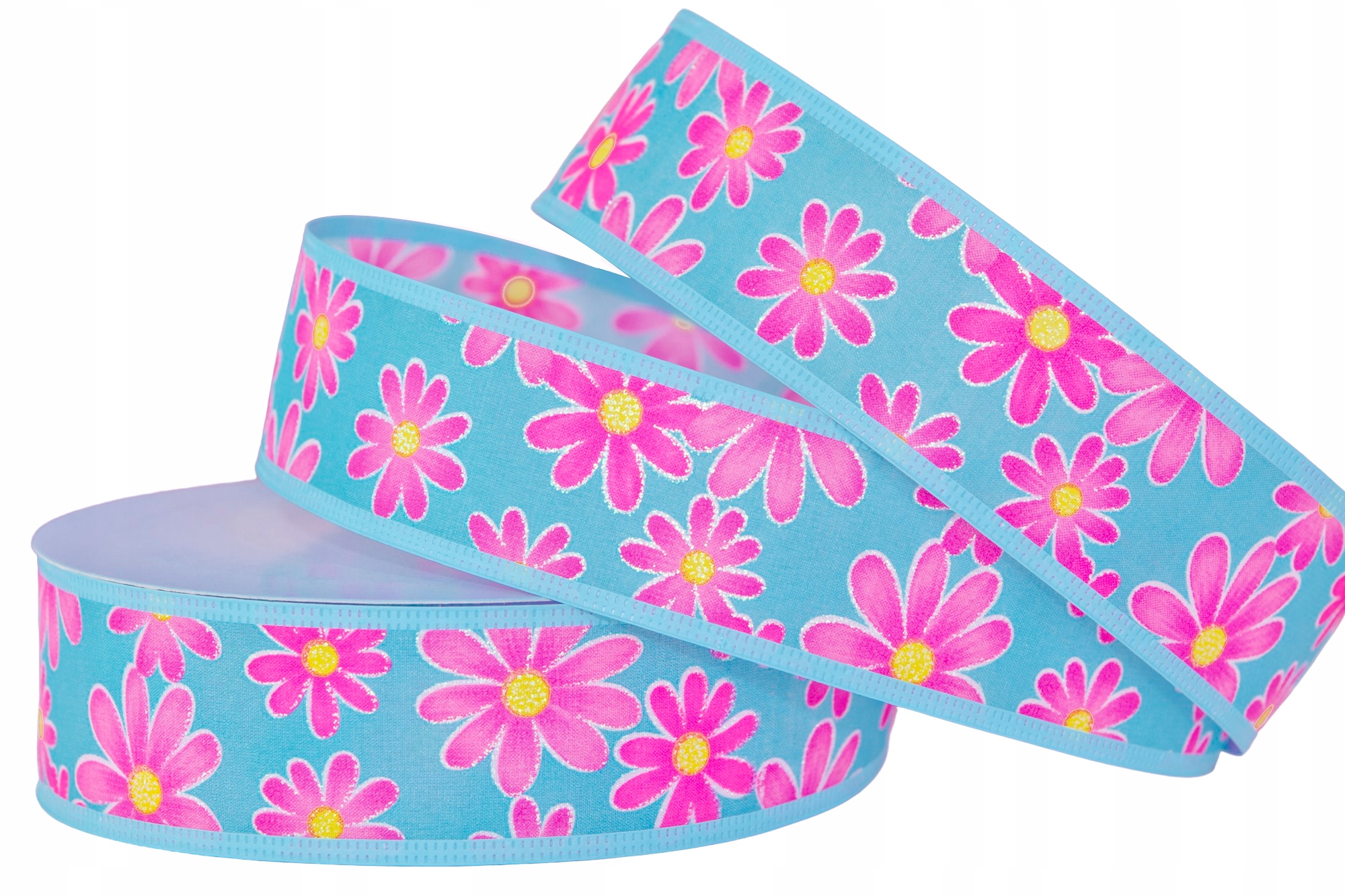 Ленточная лента розовые цветы 4 см/10м бирюзовый