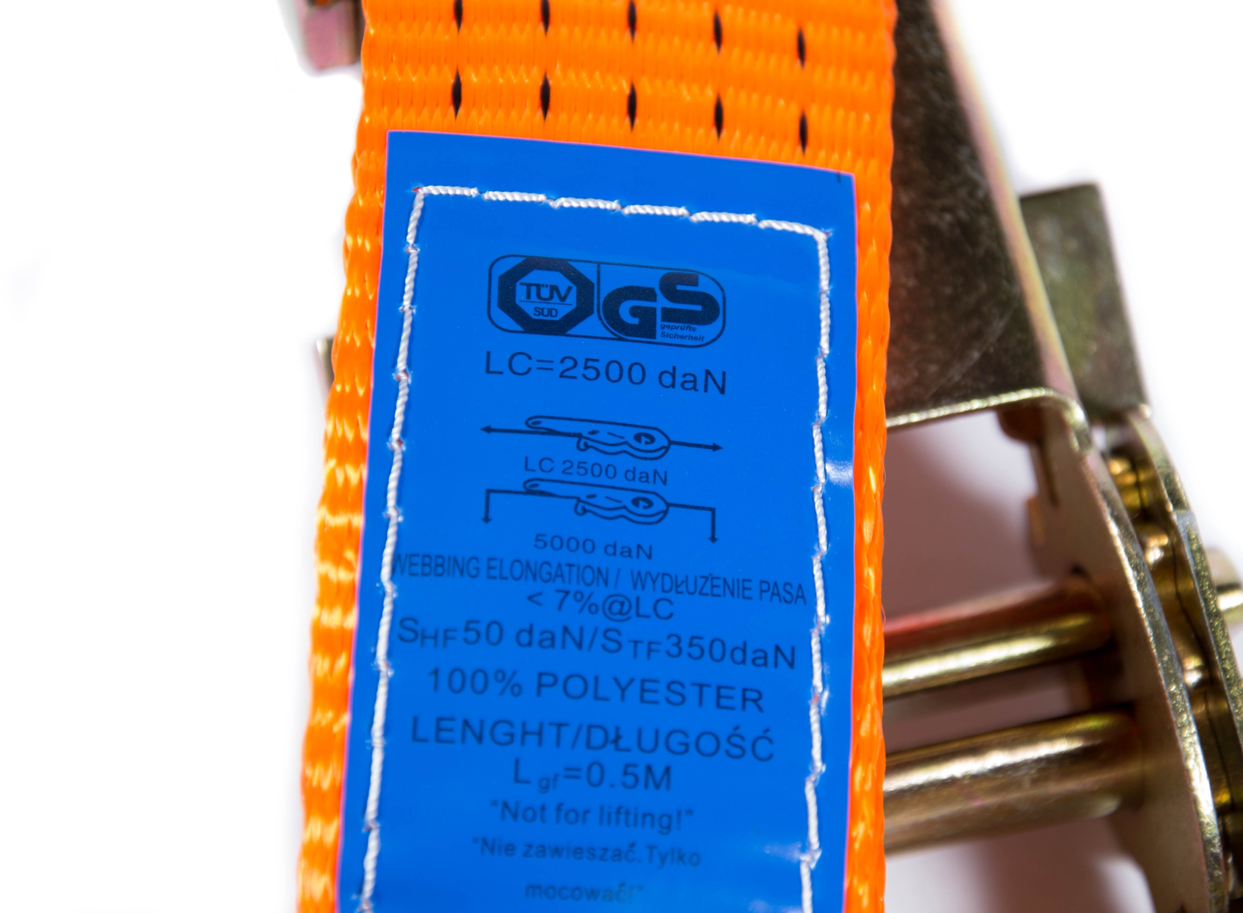На крючках и пряжке в видимых местах выбита номинальная рабочая нагрузка - 2,5т тонн