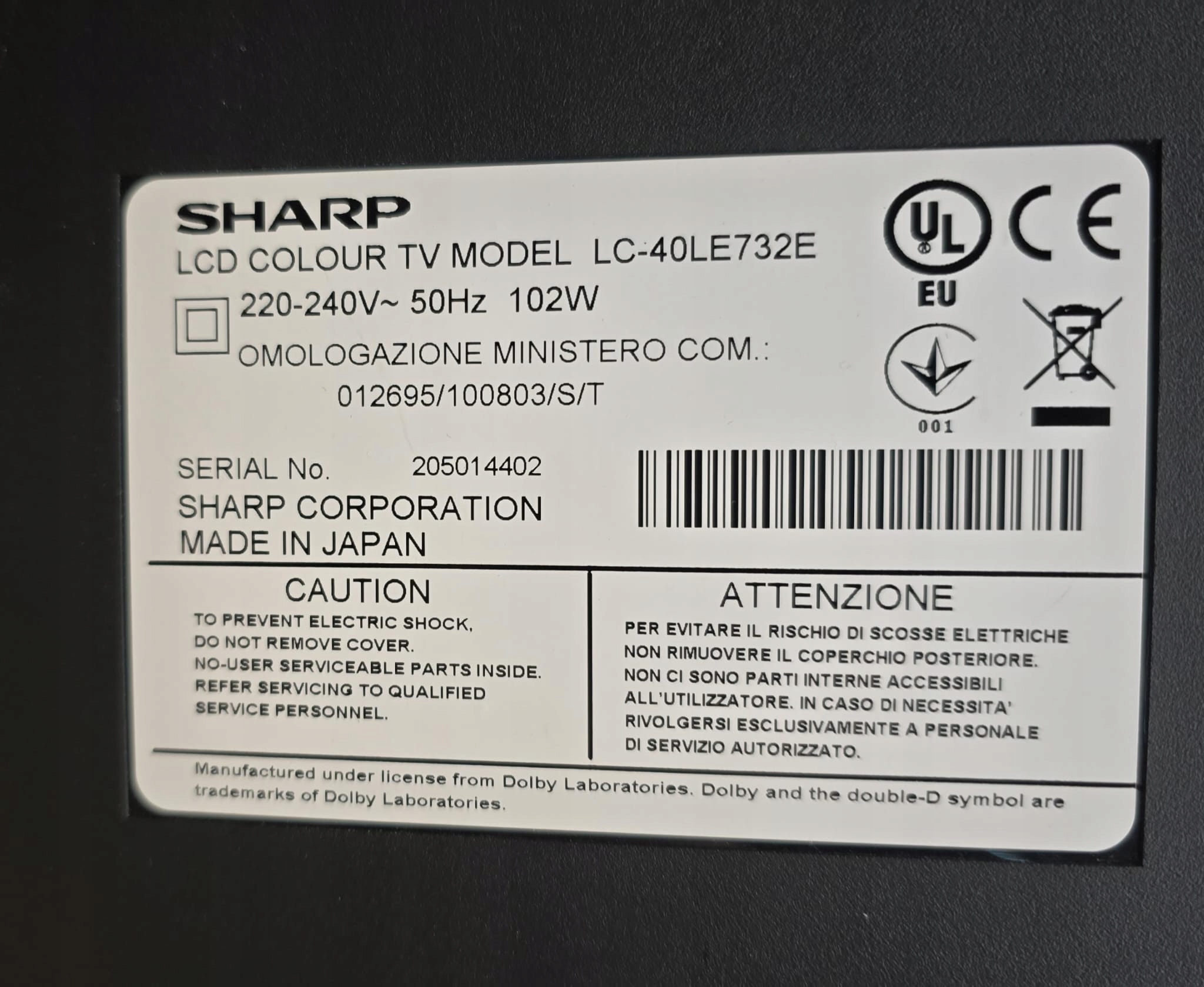 Модель телевизора: SHARP LC-40LE732E