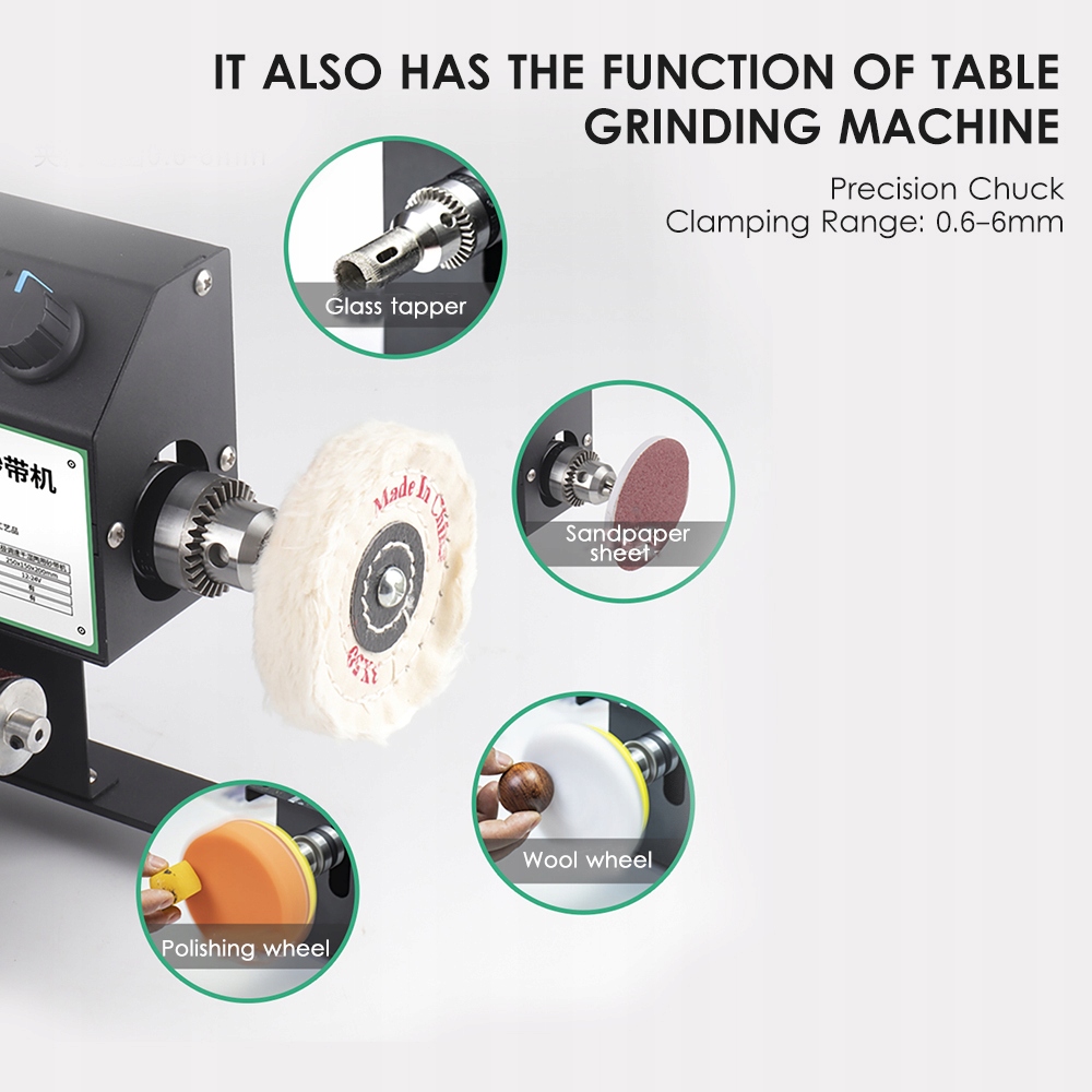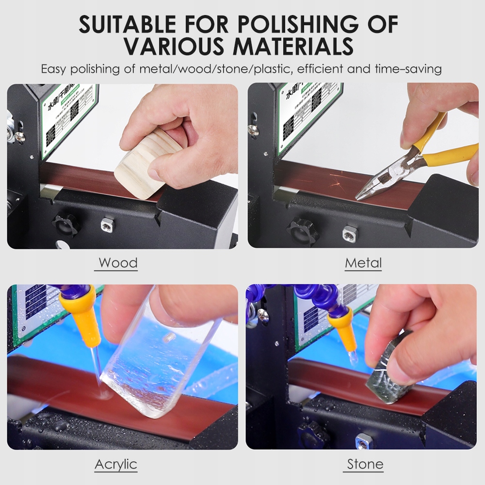 1. Ленточная шлифовальная машина 2-в-1: водная шлифовальная и шлифовальная машина с абразивной лентой, быстрая шлифовка/полировка, не беспокоясь о нагреве или возгорании. И производит меньше пыли при полировке дерева и других материалов.