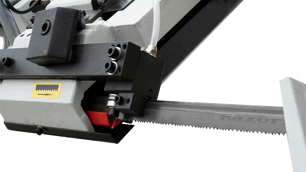 Подача режущего материала может осуществляться вручную или с помощью любого механического устройства, при этом подача инструмента происходит автоматически. Направляющие ленты оснащены специальными твердосплавными пластинами и подшипниками. Это оказывает огромное влияние на направляющую ленты, ее срок службы, прямолинейность, точность и качество резки.